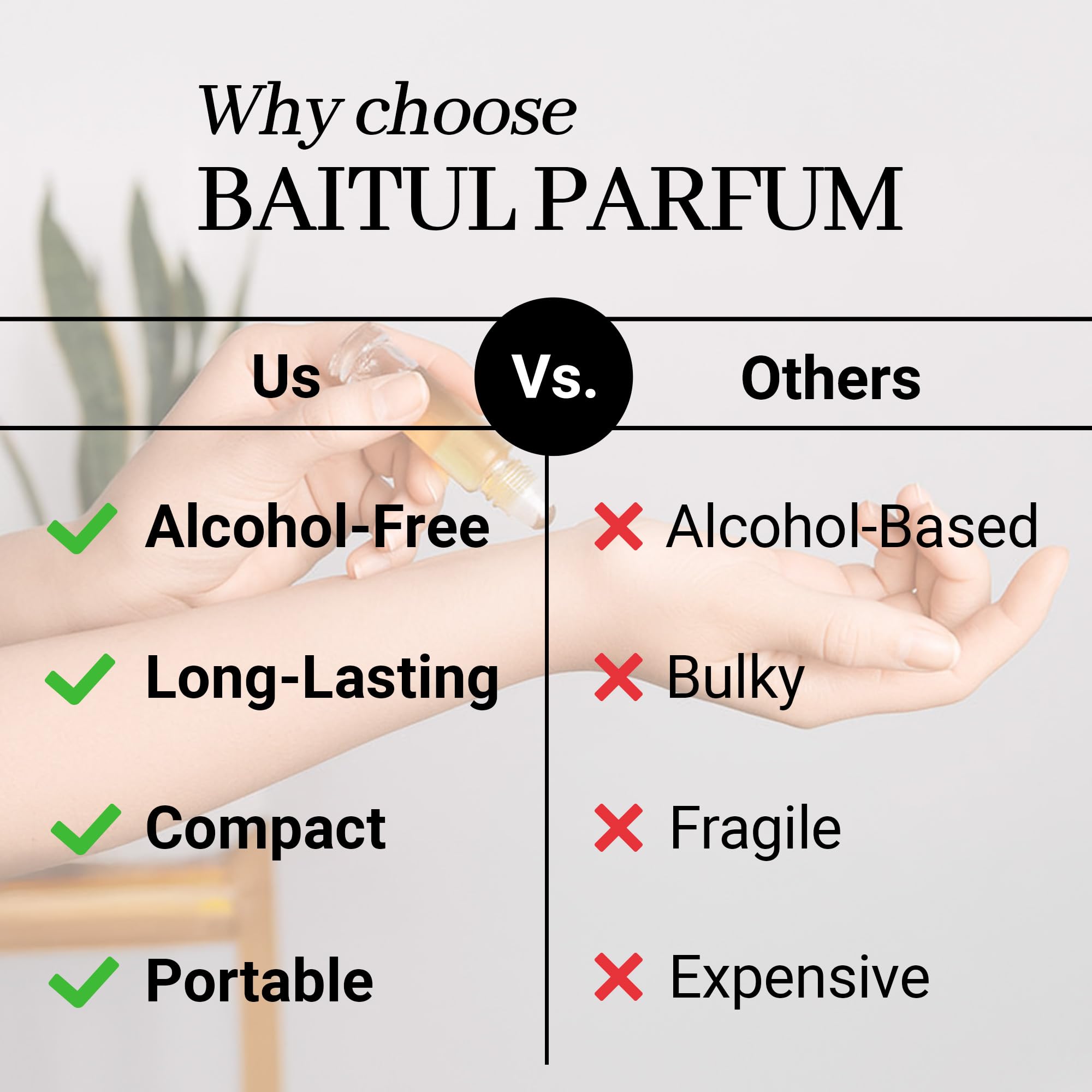 Gentle Skin Application: Designed for comfort, this Perfume Roller glides on smoothly and suits all skin types. Free from alcohol and heavy additives, it offers a soft finish while maintaining a noticeable scent throughout wear.