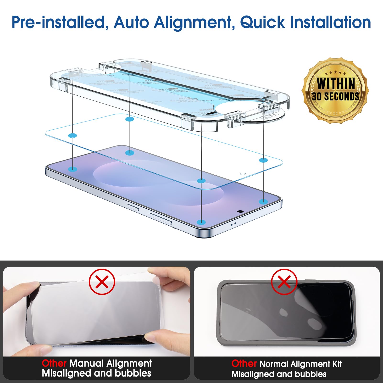 šćUltra-Fast Installation, Auto-Alignment in 30 seconds!ć Installing a screen protector might seem like a headache, but our OneTouch Samsung Galaxy S25 Edge screen protector is equipped with an automatic alignment kit for a fast installation in just 30 seconds! Say goodbye to the hassle of manual alignment.