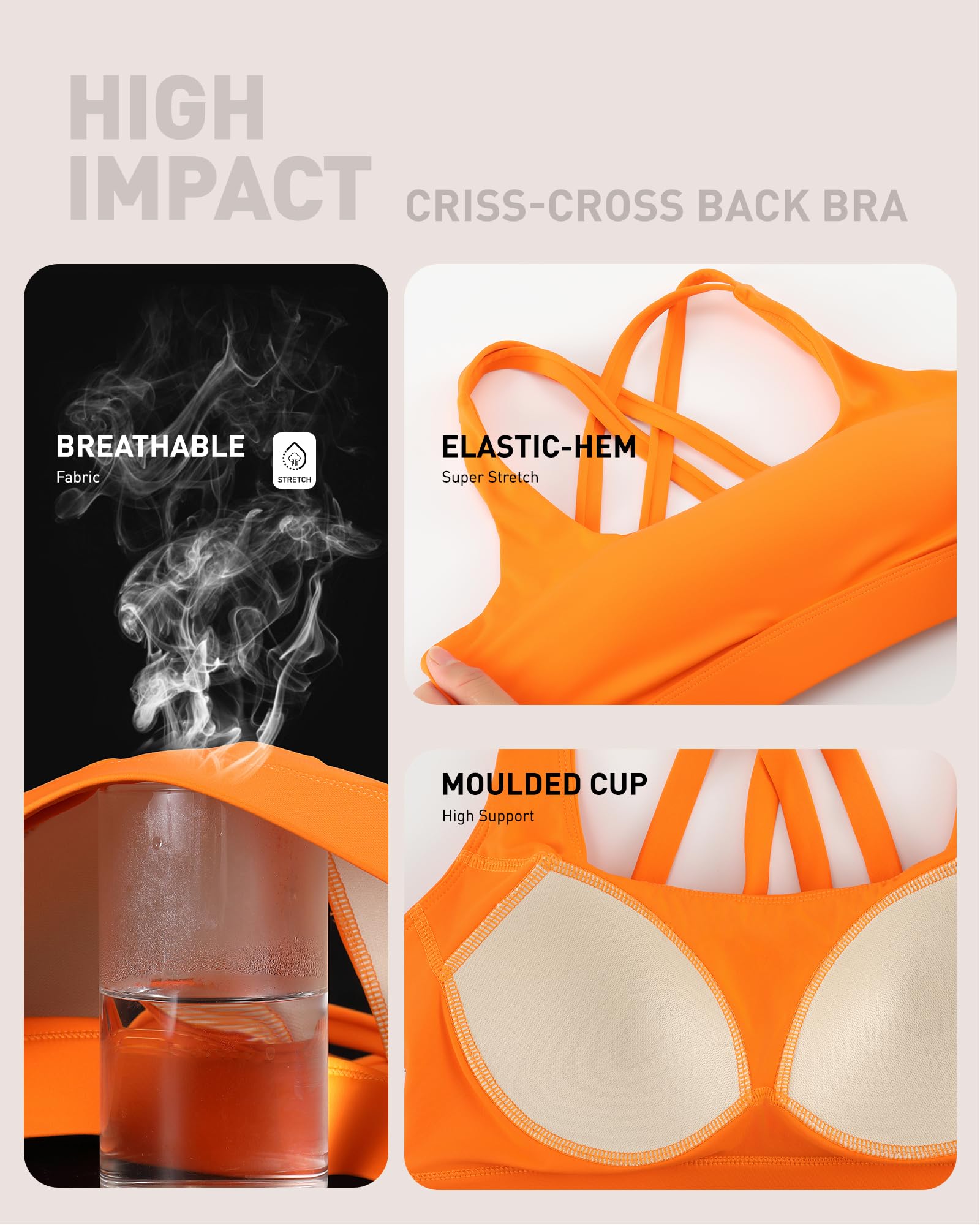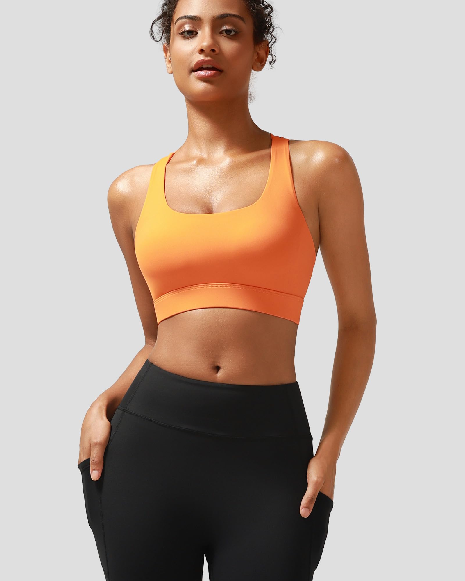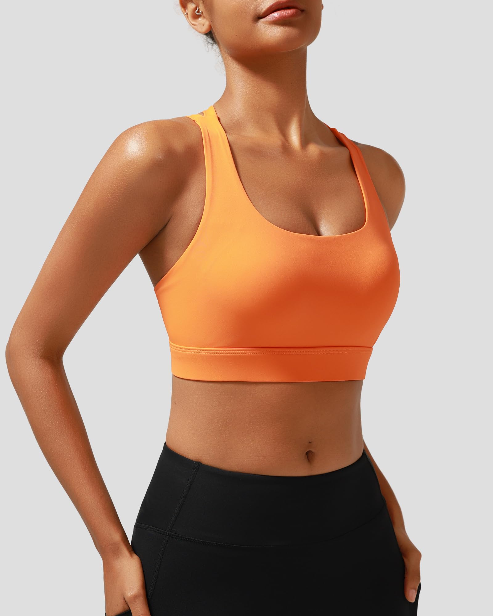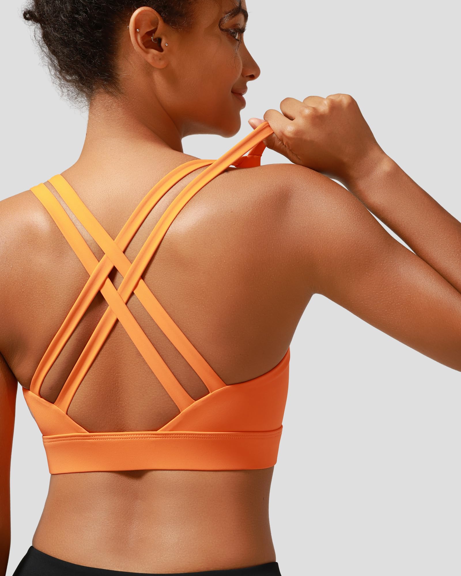 ✅ 【Supportive Sports Bra】:Intense workouts call for extra support. RUNNING GIRL Sports Bra is strategically designed to deliver support and tailored for high impact activities like running, jumping and full body workouts.Featuring Criss-cross Straps, Buttery-Soft Fabric,brushed elastic band detail.