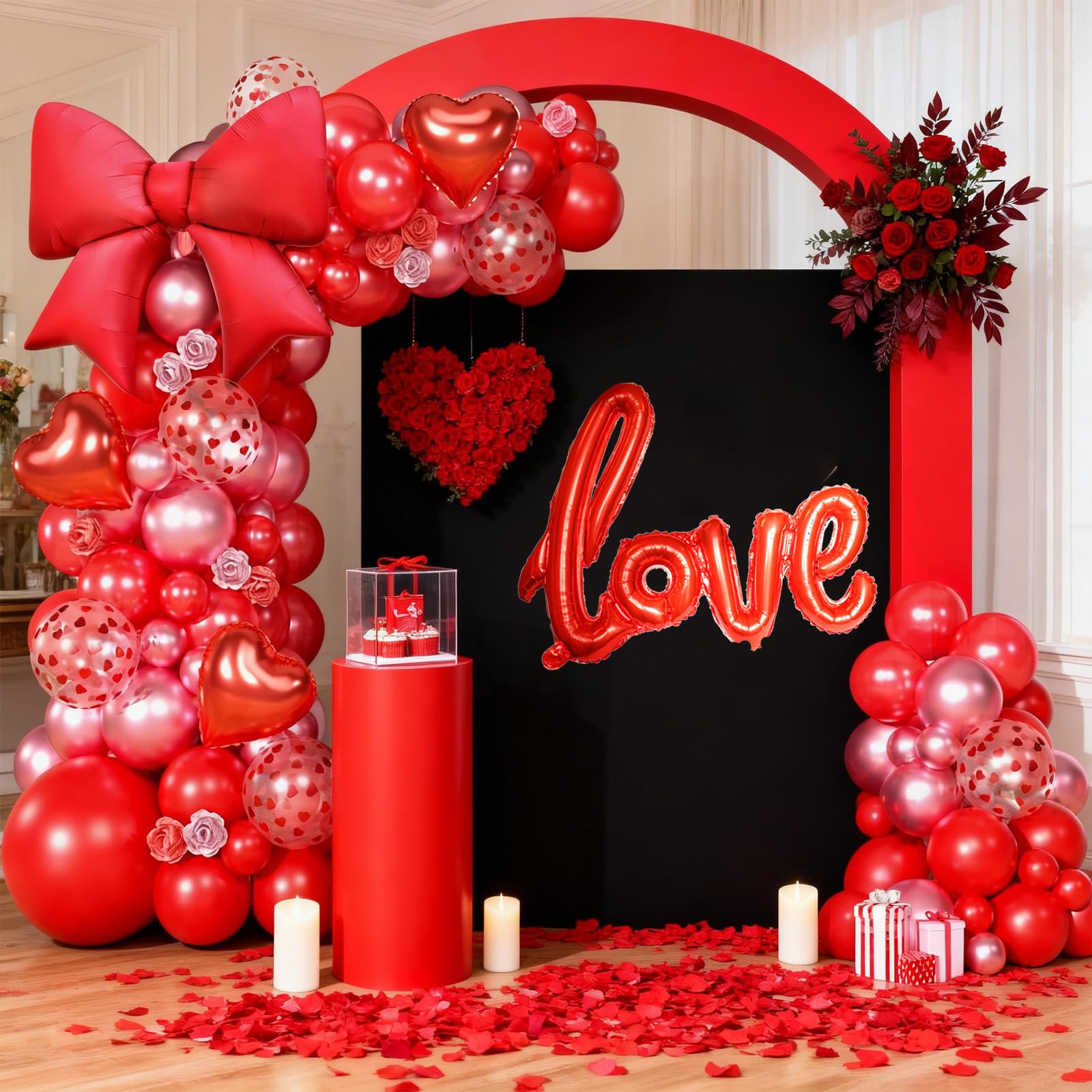Premium Material: The red Valentine balloons arch kit is crafted from premium materials, ensuring durability and vibrant colors that last throughout your entire celebration. When arranged as a true love party-themed arch or garland, the balloons stay vibrant throughout the celebration, allowing your family and friends to enjoy a joyful holiday scene filled with warmth and color.