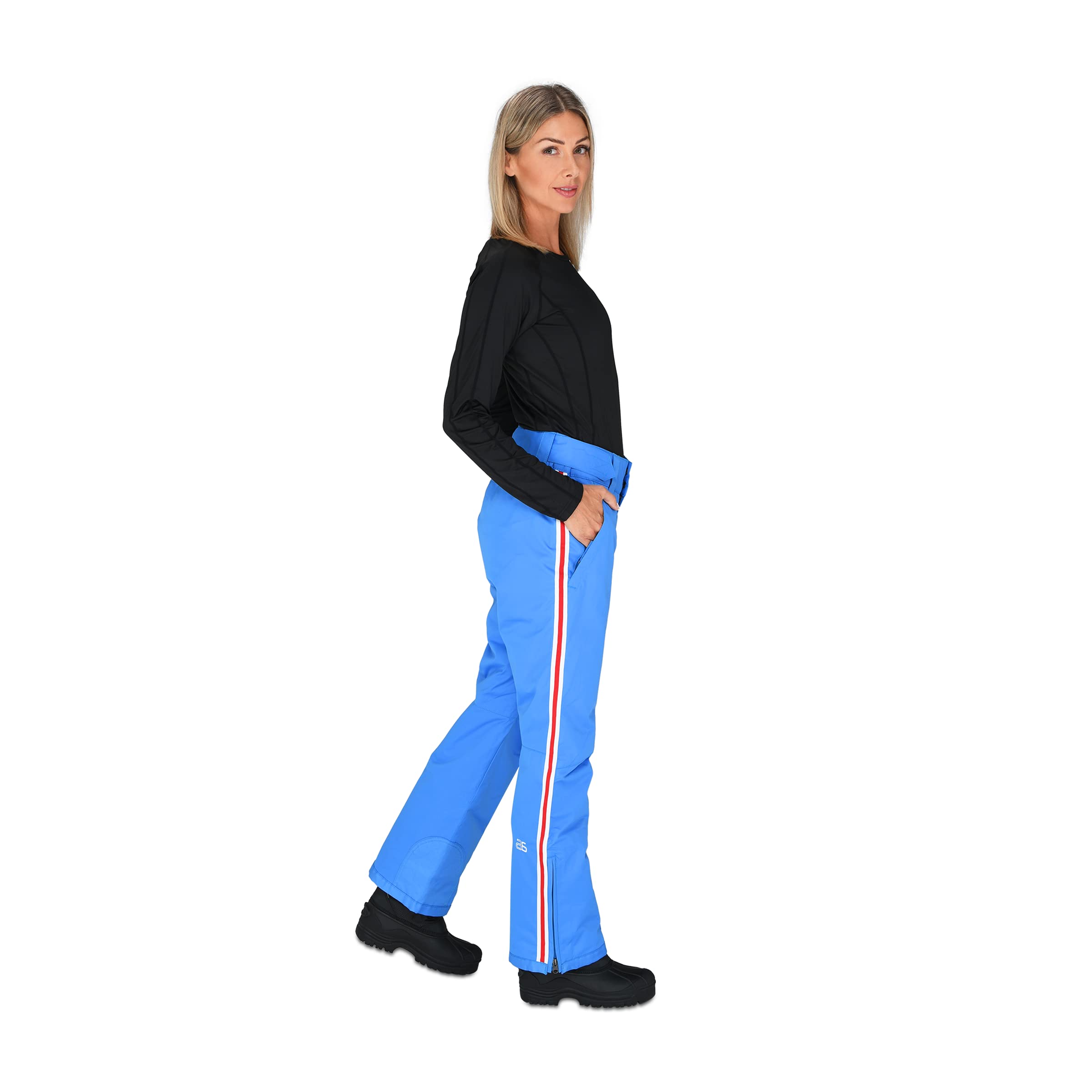 Adjustable waist for comfortable fit; Boot Zippers for easy on and off, along with O-ring for keys, gloves, and/or lift tickets