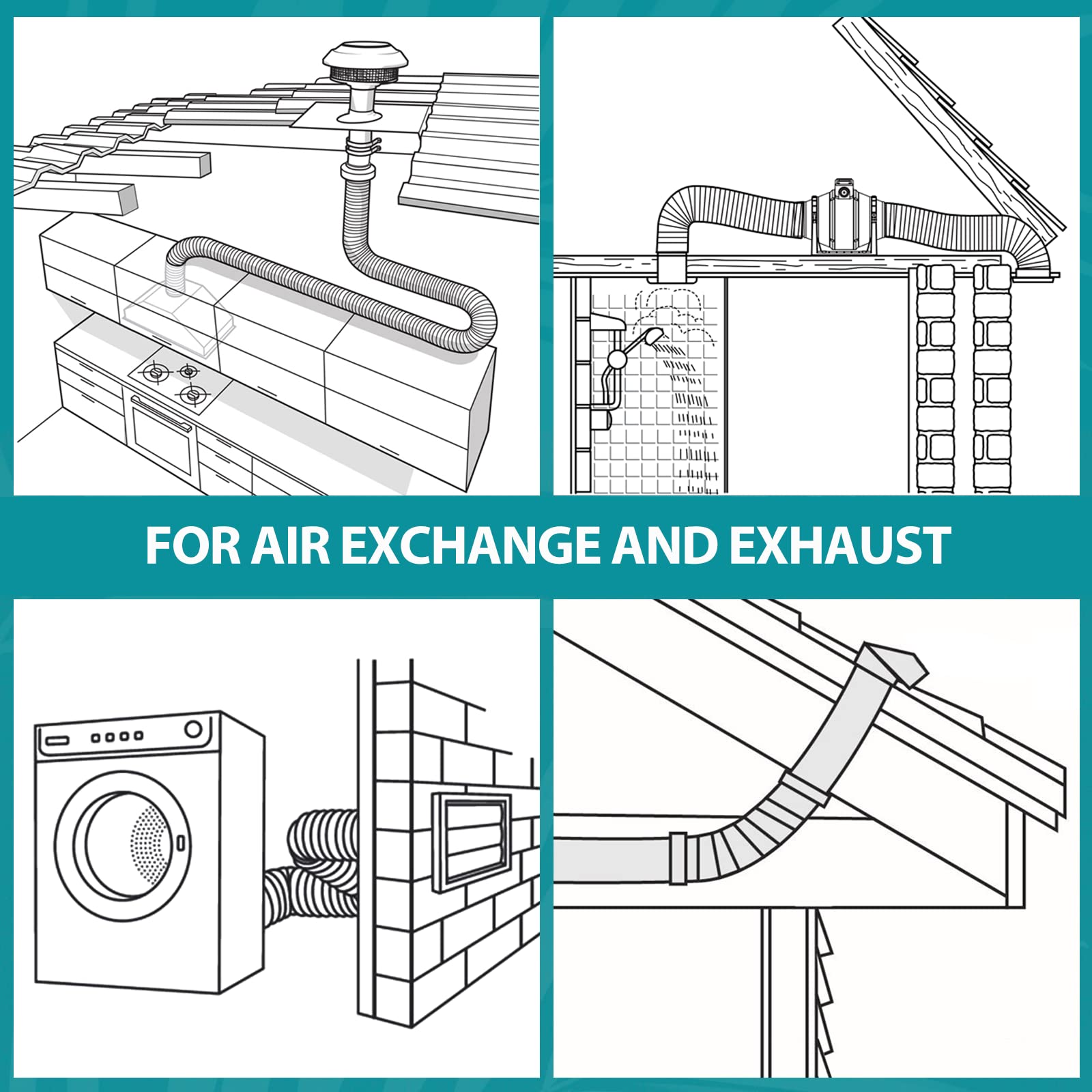 Variety Of Applications: Dryer vent hose for tight space is mainly used in HAVC ventilation systems, including kitchens, tumble dryers, bathrooms grow rooms and tents air circulation, and other HVAC applications.