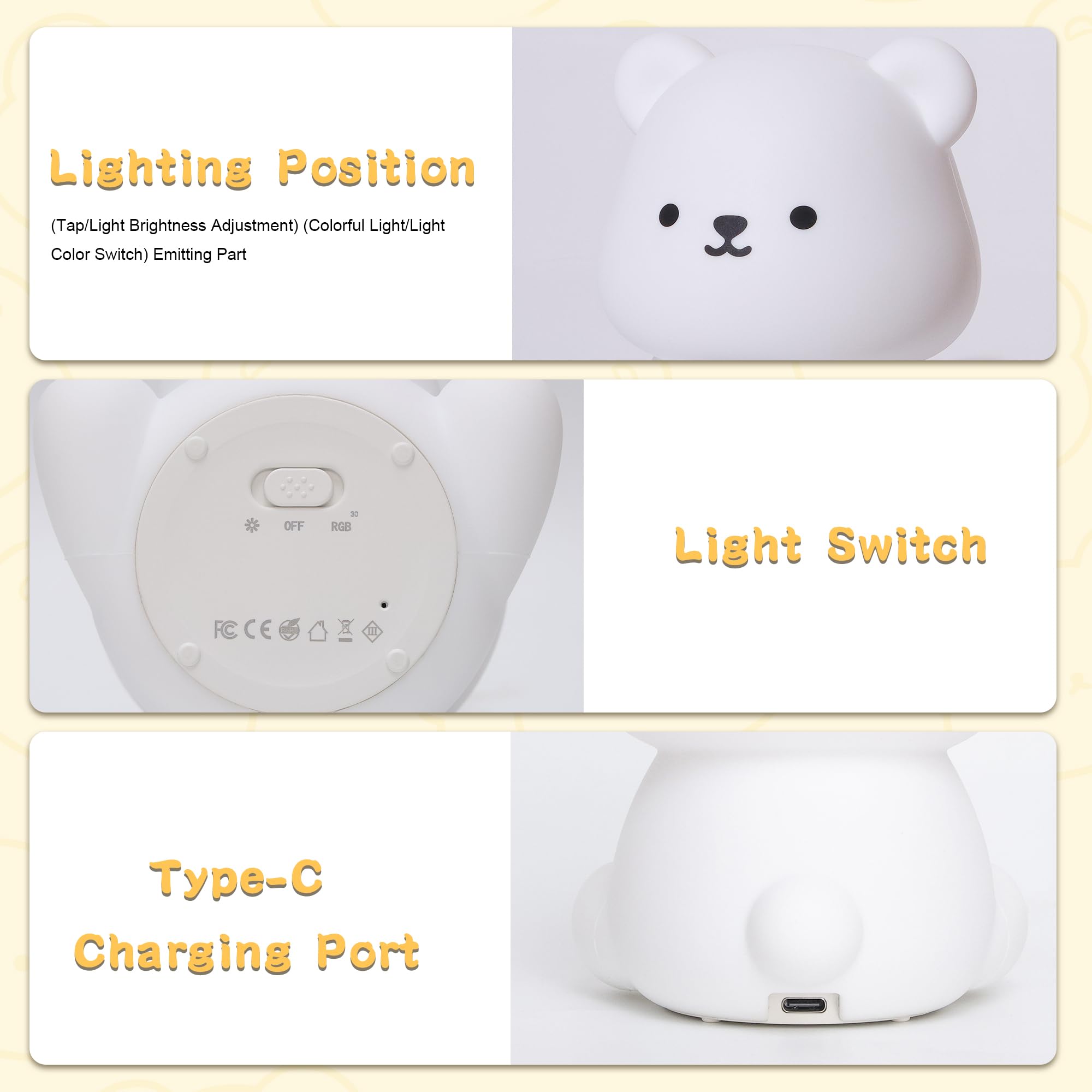 Safe and Durable: Crafted from BPA-free washable soft silicone, this bear lamp is safe for handling, allowing toddlers to toss and squeeze it without any worries.
