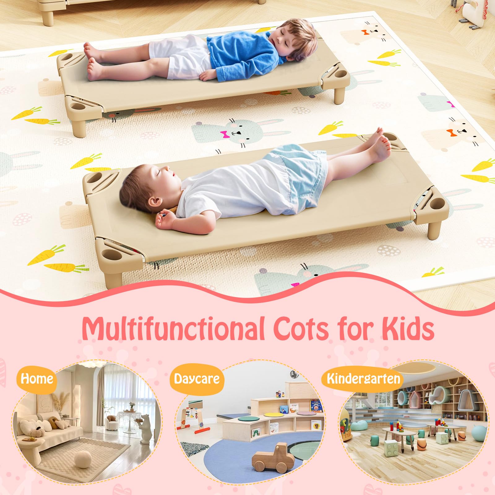 [Versatile Set for Multipurpose Use]: Not only perfect for daycare centers, but these stackable cots for kids are also ideal for use in preschools, kindergartens, pet daycare, and even at home for playtime or naptime.