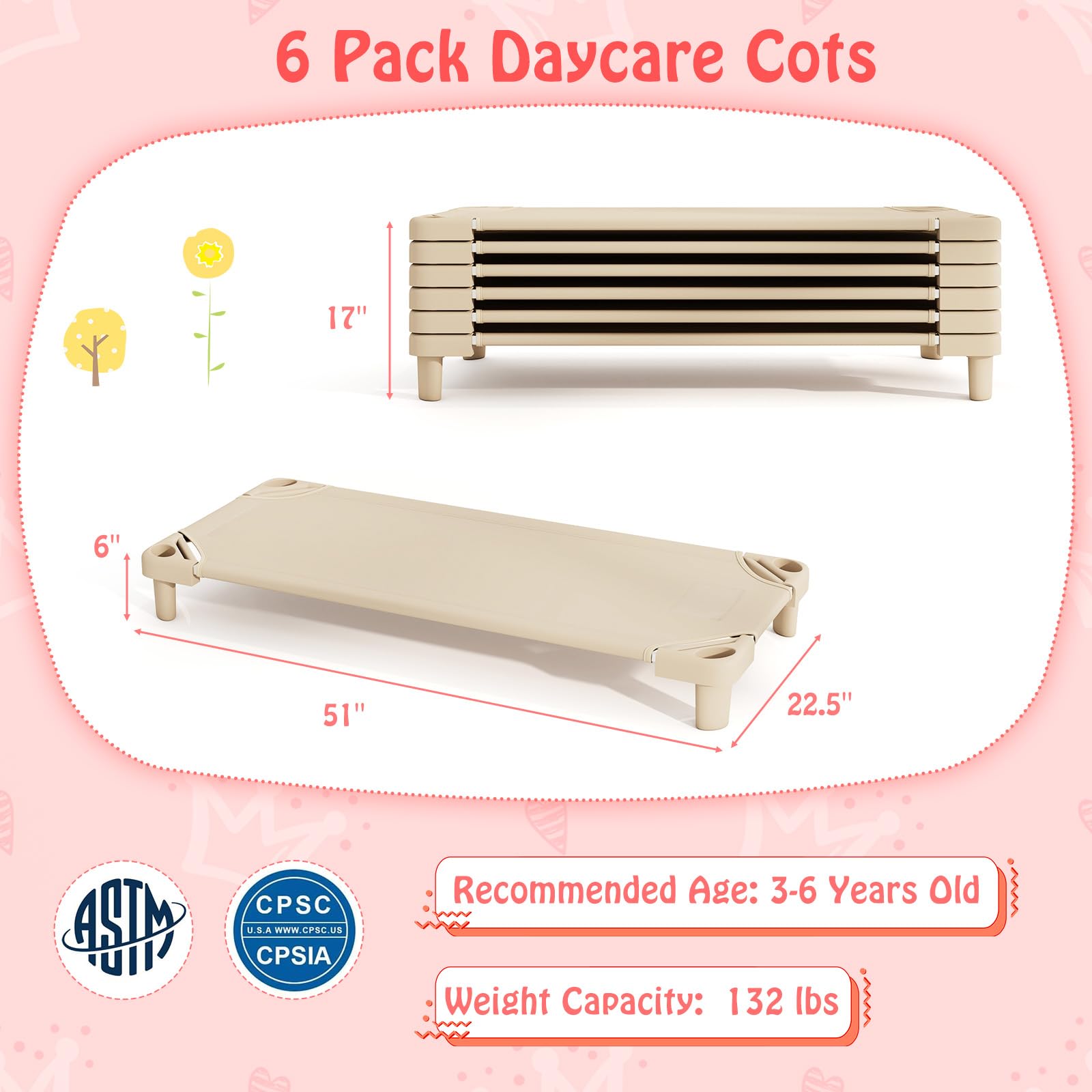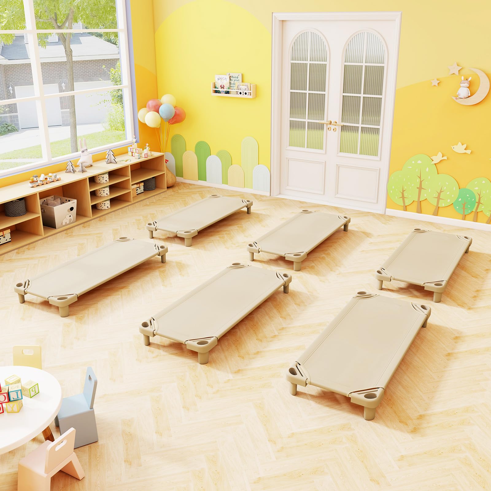 [Space-saving Stackable Design]: Our cots for sleeping features a lightweight and stackable design, allowing for easy and convenient storage when not in use, saving valuable space in your daycare or preschool.