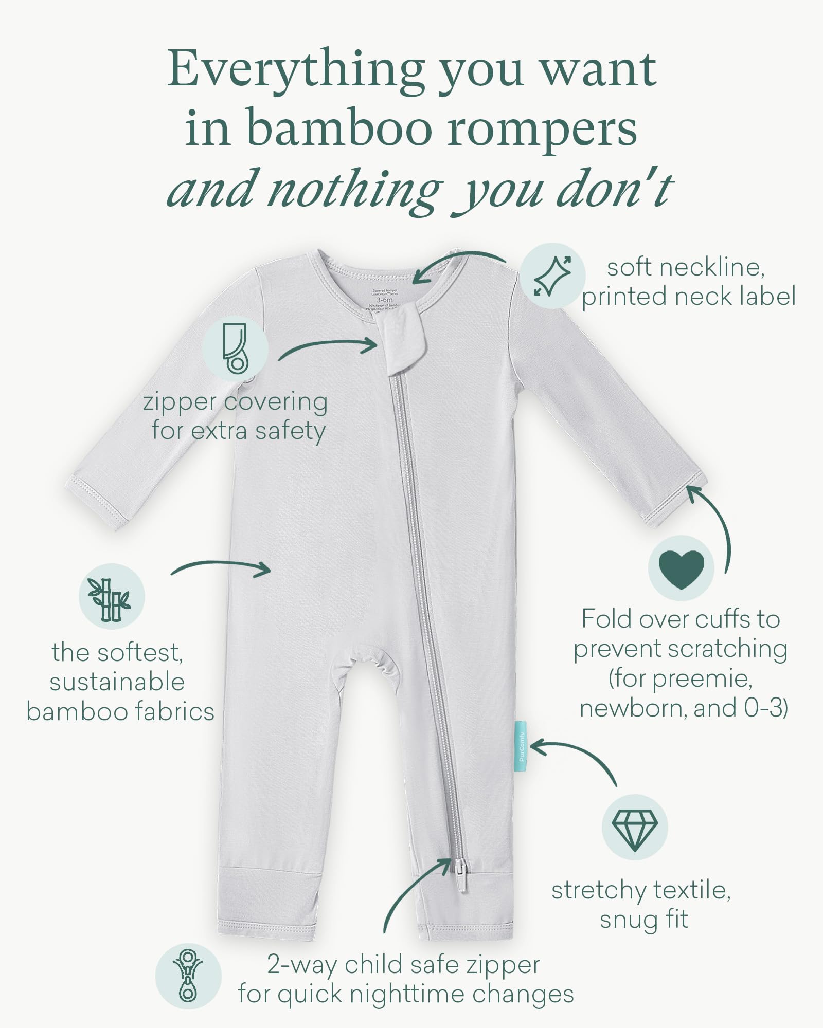 Better Than Ever: Indulge in softness with our baby long-sleeve romper - crafted from 96% Super Soft Rayon, 4% Spandex. Delight in the buttery softness, gentle on sensitive skin. This fabric acts as a moisture-wicking sanctuary, ensuring a dry and snug embrace. With a stretchy composition that molds to your baby's body, it flexes seamlessly with every adorable move. Elevate comfort with PurComfy – where opulence meets the perfect blend of softness and functionality.