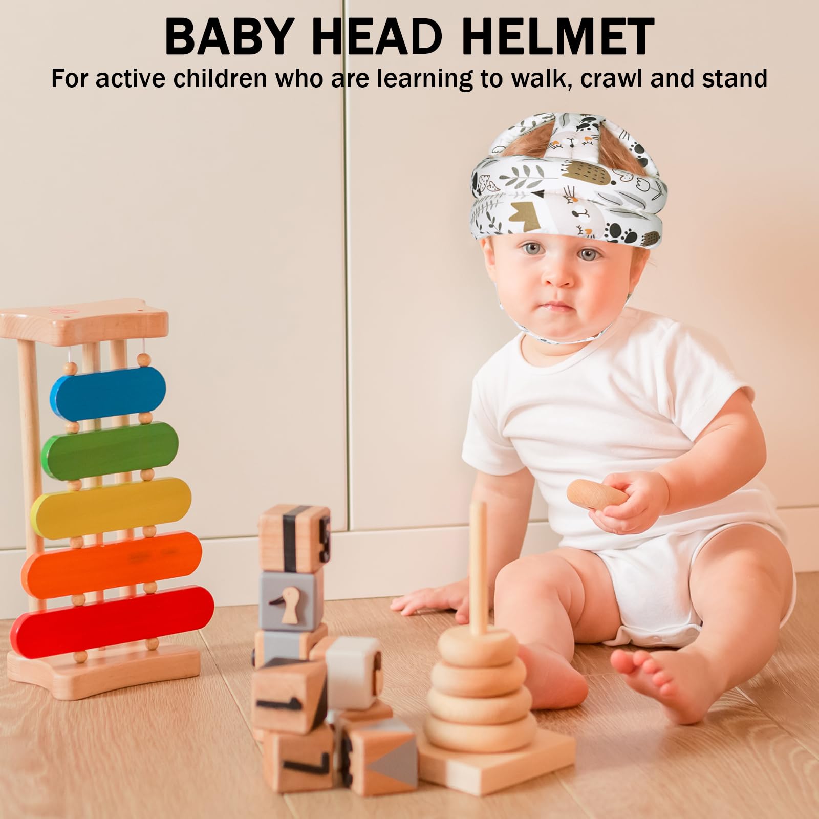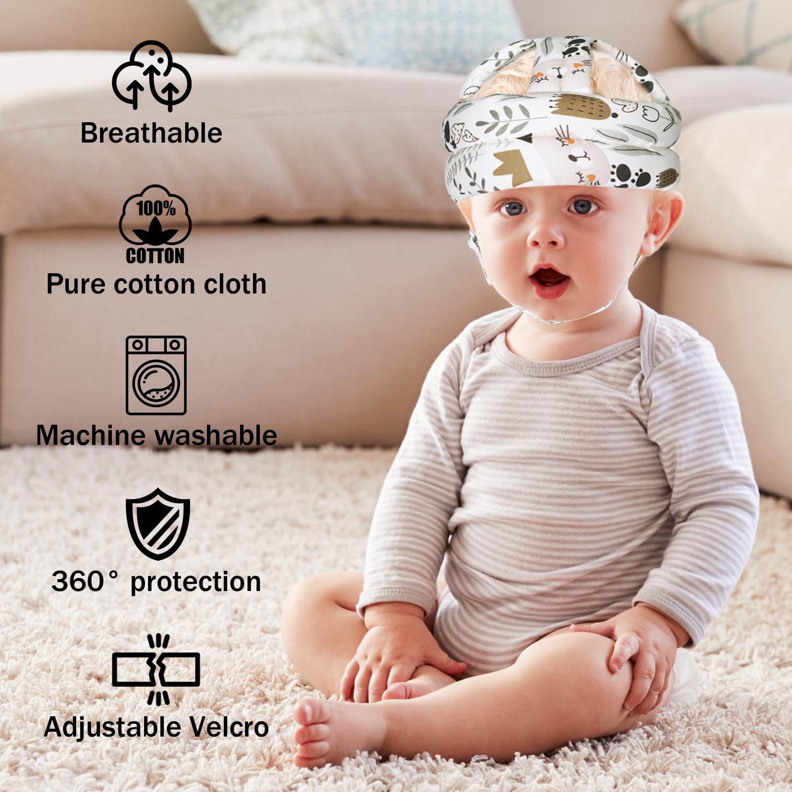 【Ideal for Learning to Walk】 Specially crafted for milestones like crawling, standing, and first steps. The lightweight "learning-to-walk helmet" reduces fall impact, letting babies explore confidently while parents enjoy peace of mind.