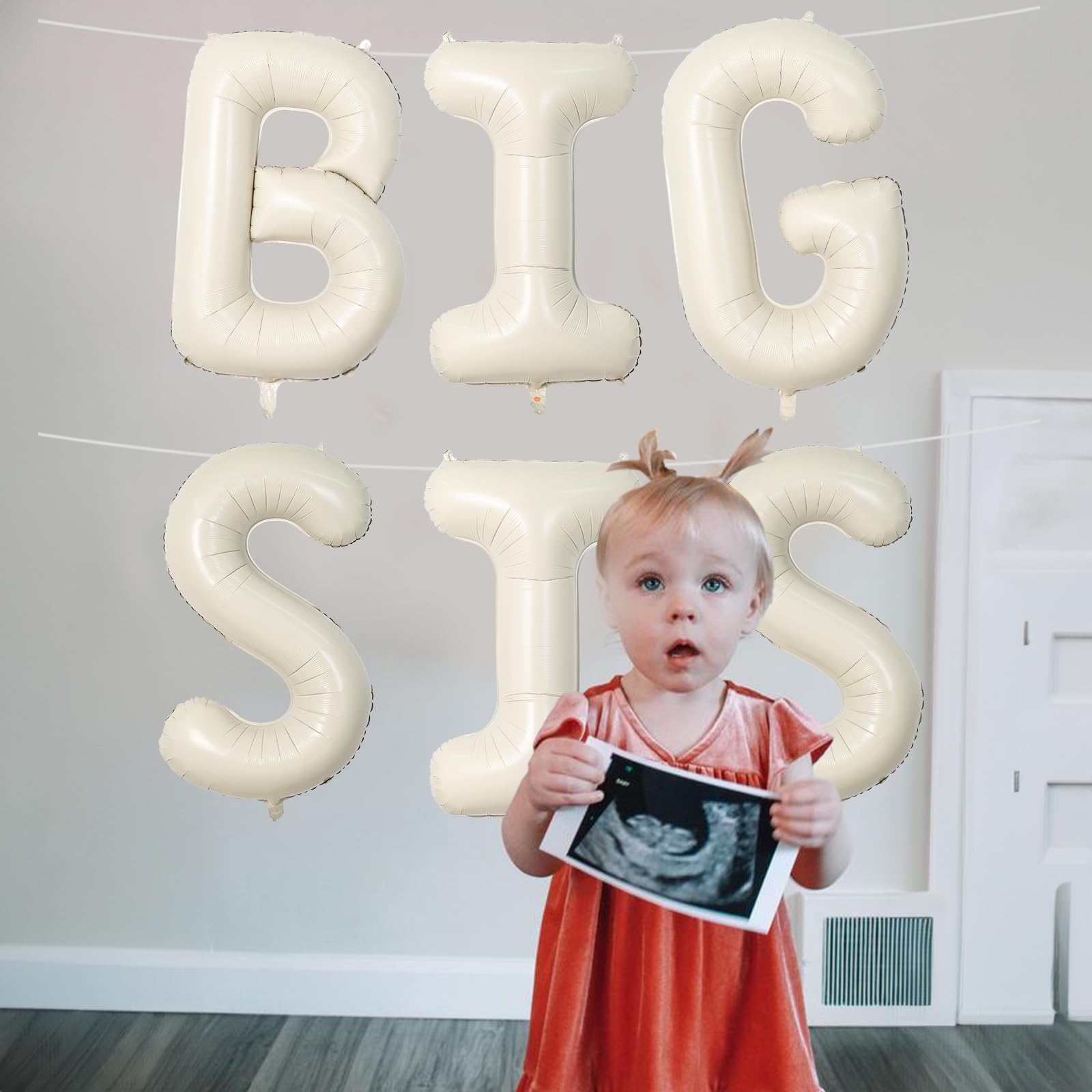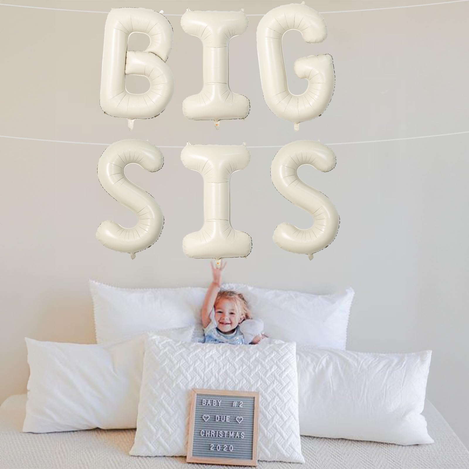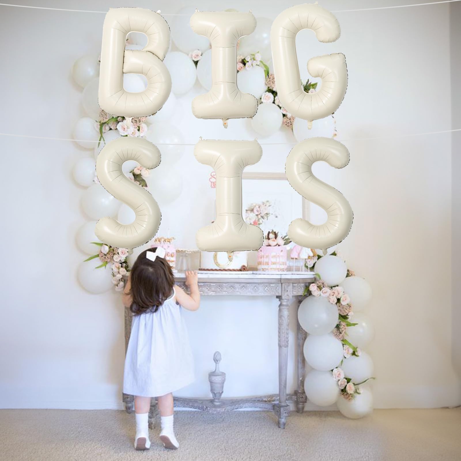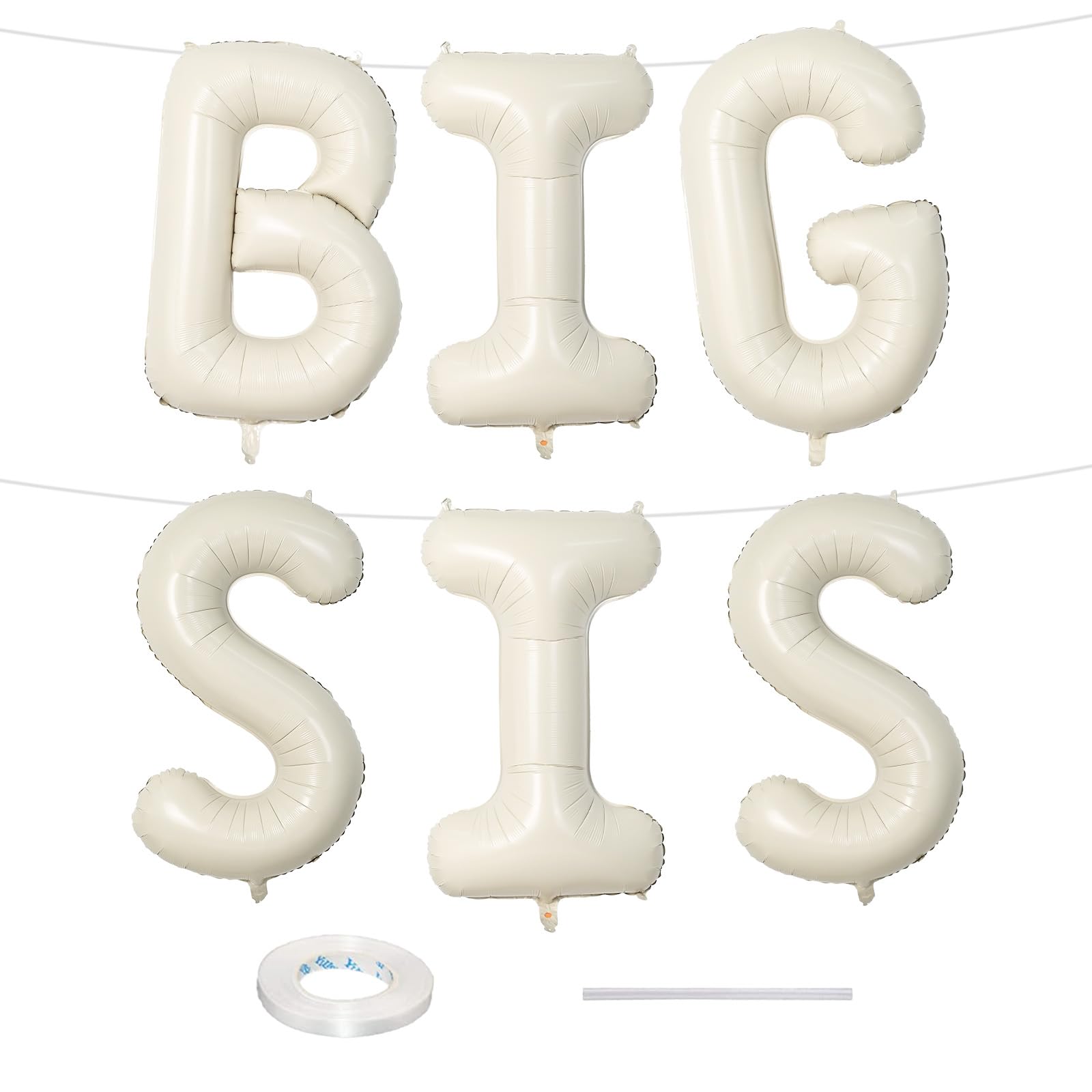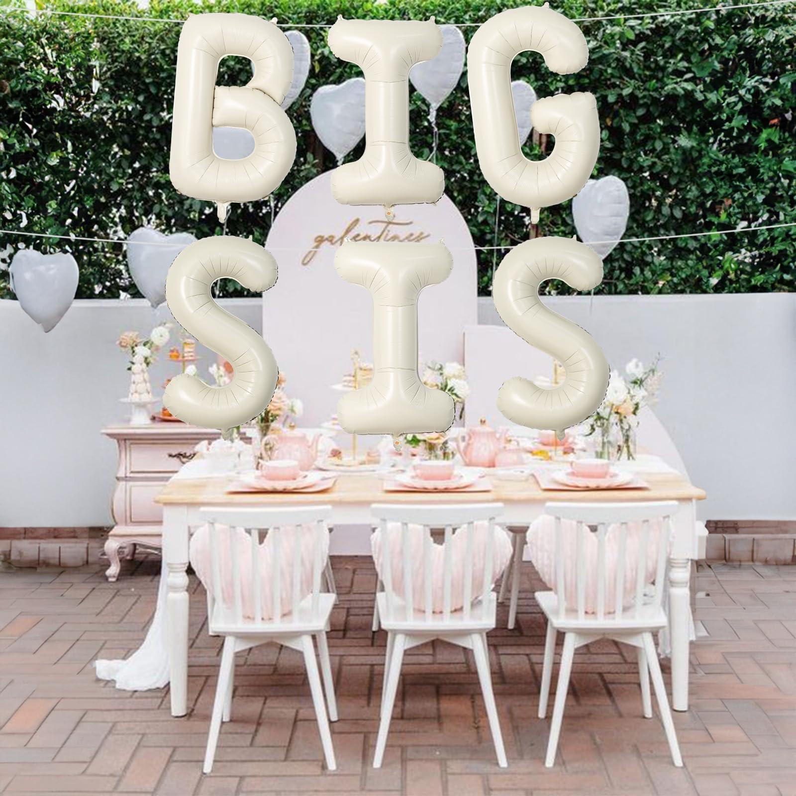 💕 BIG SIS Balloons for Baby Shower Party Decorations 💕 You will get 6 pieces 40 inch large beige B + I + G + S + I + S foil letter balloons with 1pc balloon ribbon, perfect for baby girls baby shower gender reveal announcement birthday party decorations supplies.