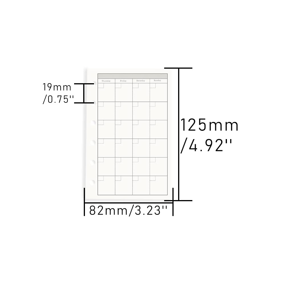 MEASUREMENT - The A7 refillable planner inserts size is 4.92" x 3.23" x 0.2"--(125 x 85 x 5mm), suitable for A7 6-Rings Binder. Please check the product images and compare them to your own binder to make sure that size is suitable your binder.
