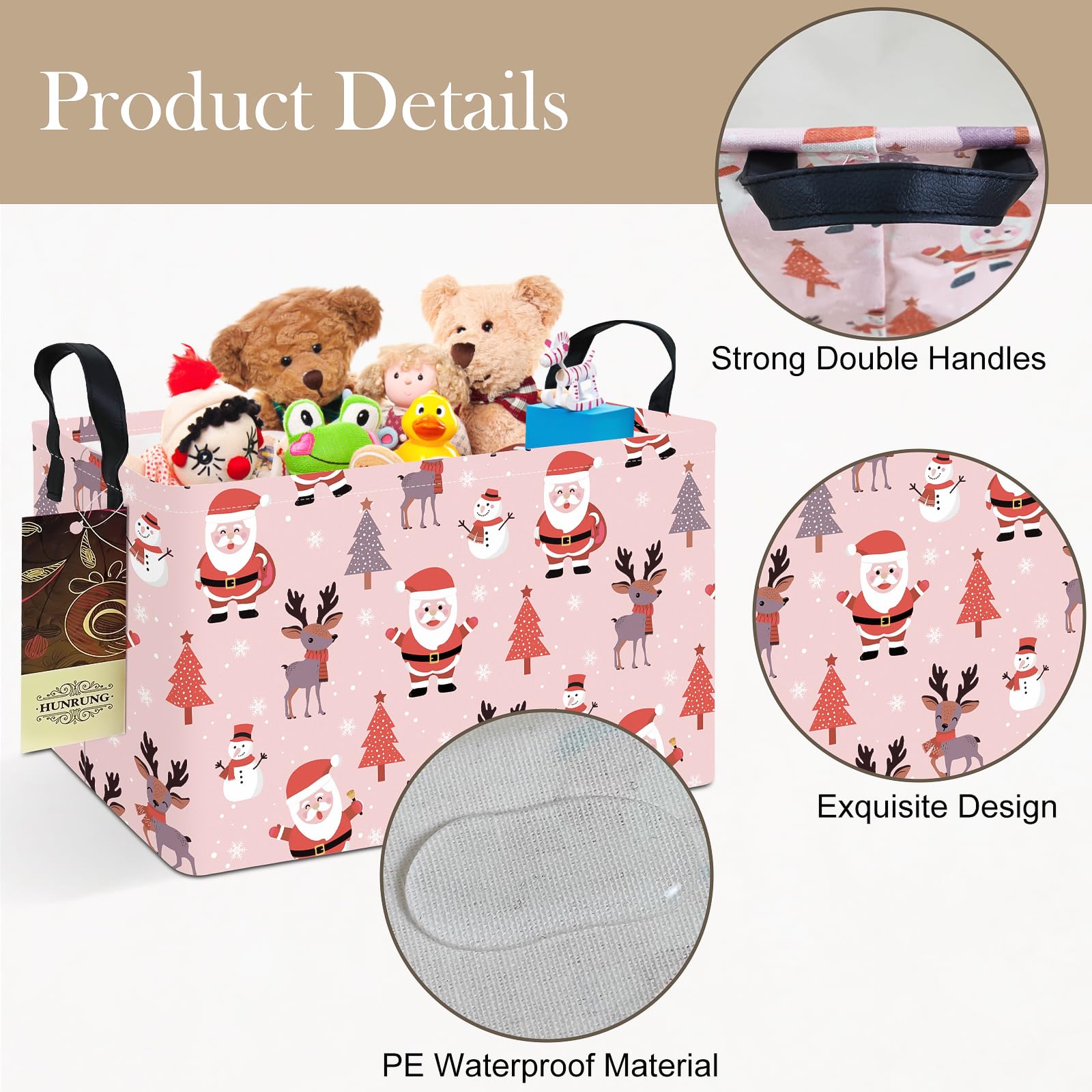 This storage bag suitable for adult, teens, children; Suitable for toys, books, clothes and other stuff, suitable for home and school. Why choose our large storage basket? - Spacious capacity,14.9’’L ×10.2’’W×9.05’’H inches, store more stuff. - handles for easy toting. - Collapsible design for compact, convenient storage. - Cute lovely animal pattern design. - Multiple function, suitable for any place. Features: Perfect organizer for play rooms, allowing for the storage of toys, books, blocks, stuffed animals, toys with multiple pieces, train sets, or board games. Great basket for nurseries, with enough storage space for diapers, children wipes, diaper rash cream, children clothes, burp rags, teething toys, and lotion. The storage basket can be used in the living room to hold throw blanket, pillows, and reading materials, as well as in the bathroom for towels, or as a laundry hamper. Package details: - 3 x cute large storage basket