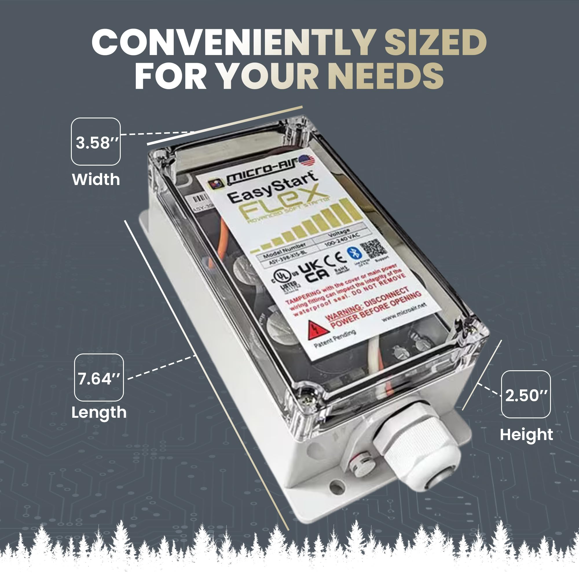 ADVANCED MICROAIR TECHNOLOGY WITH INSTALLATION KIT: Micro-Air EasyStart Flex is the most advanced and versatile soft starter, designed for all sizes of residential AC units up to 6 tons (72,000 BTUs). It provides a controlled, gentle startup that reduces mechanical stress, extending your AC system’s lifespan. This air conditioner soft start kit includes everything needed for an easy installation, making it an optimal choice for home and commercial applications.