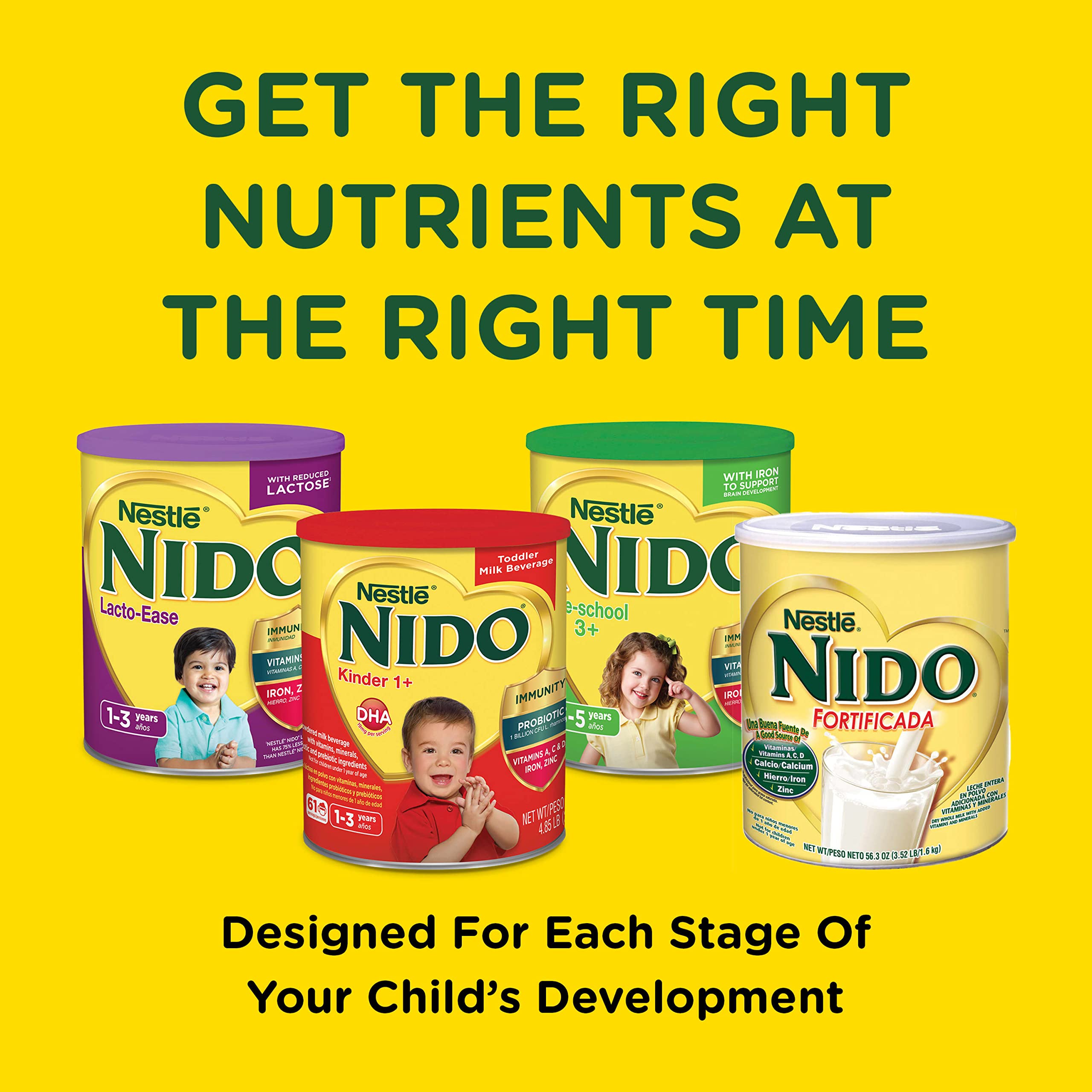Specially formulated for children 1-3 years old. NIDO 1+ starts with the goodness of milk, and also includes vitamins, minerals, and prebiotics to support growth, development, and a healthy immune system.