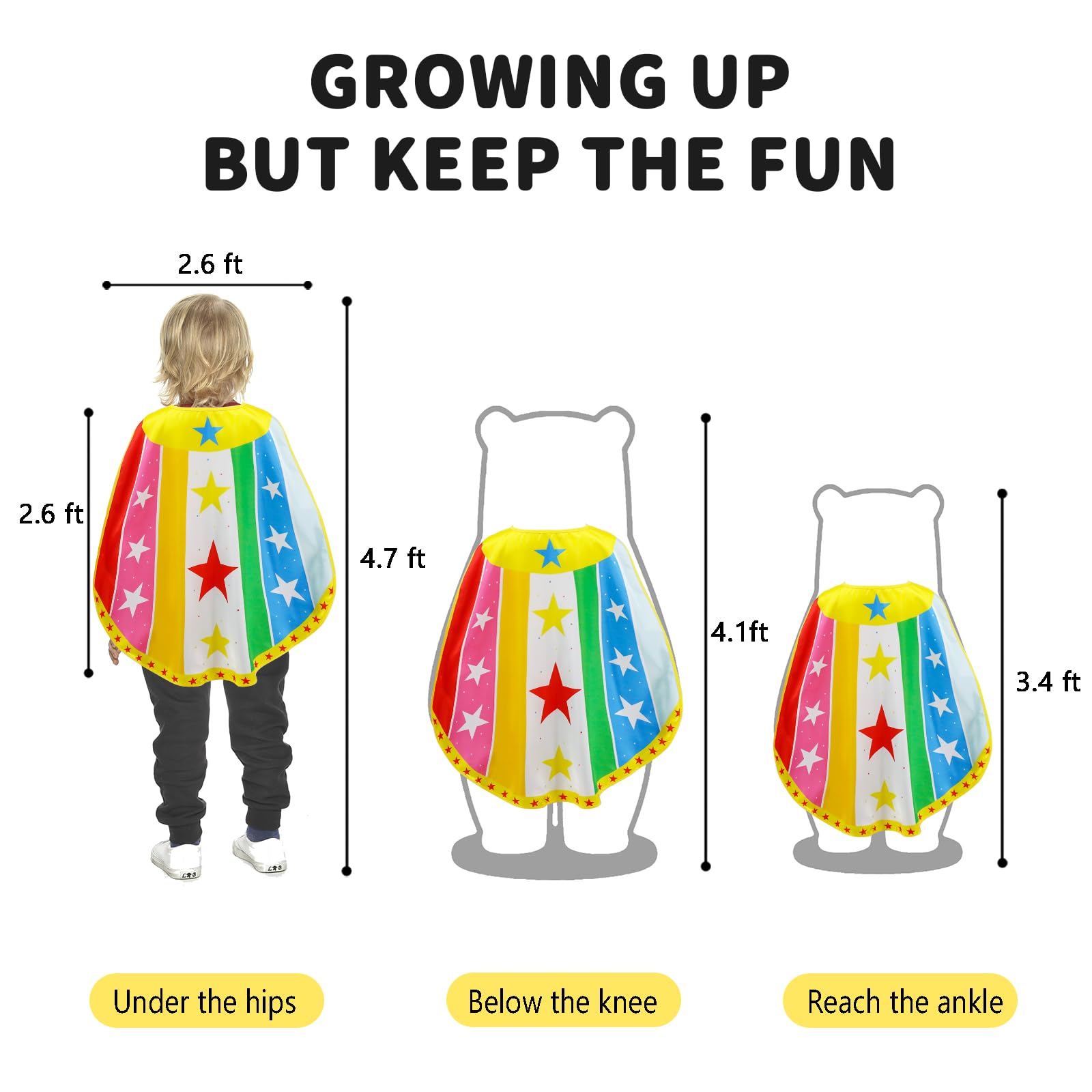 STAR SUPERHERO POWERS - Our super hero capes are endowed with the power of the stars, Strong&Fast&Smart&Brave, allowing them to fly freely in the universe and save people in distress at any time. Let your kiddoβs imagination run wild&free in our superhero costume set.
