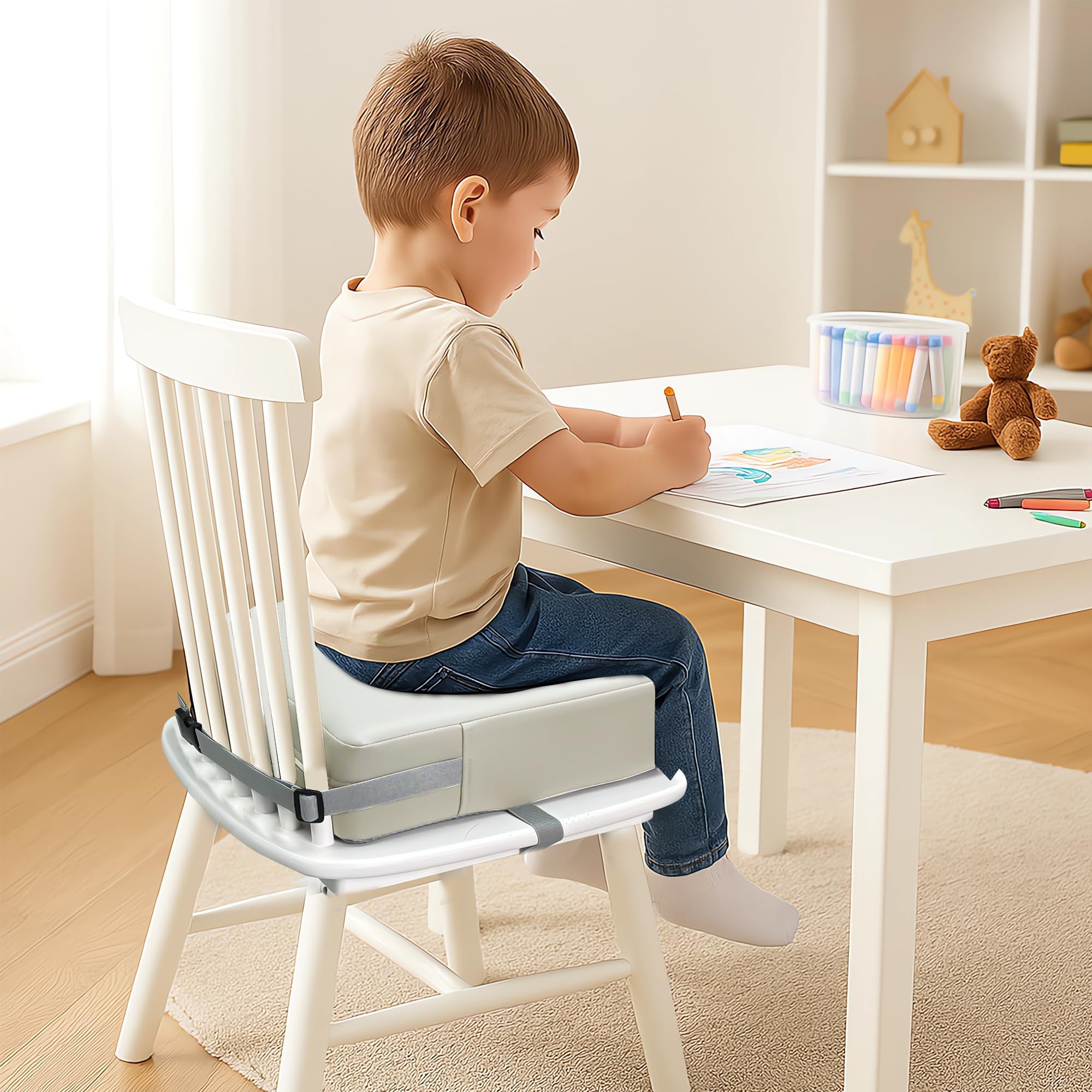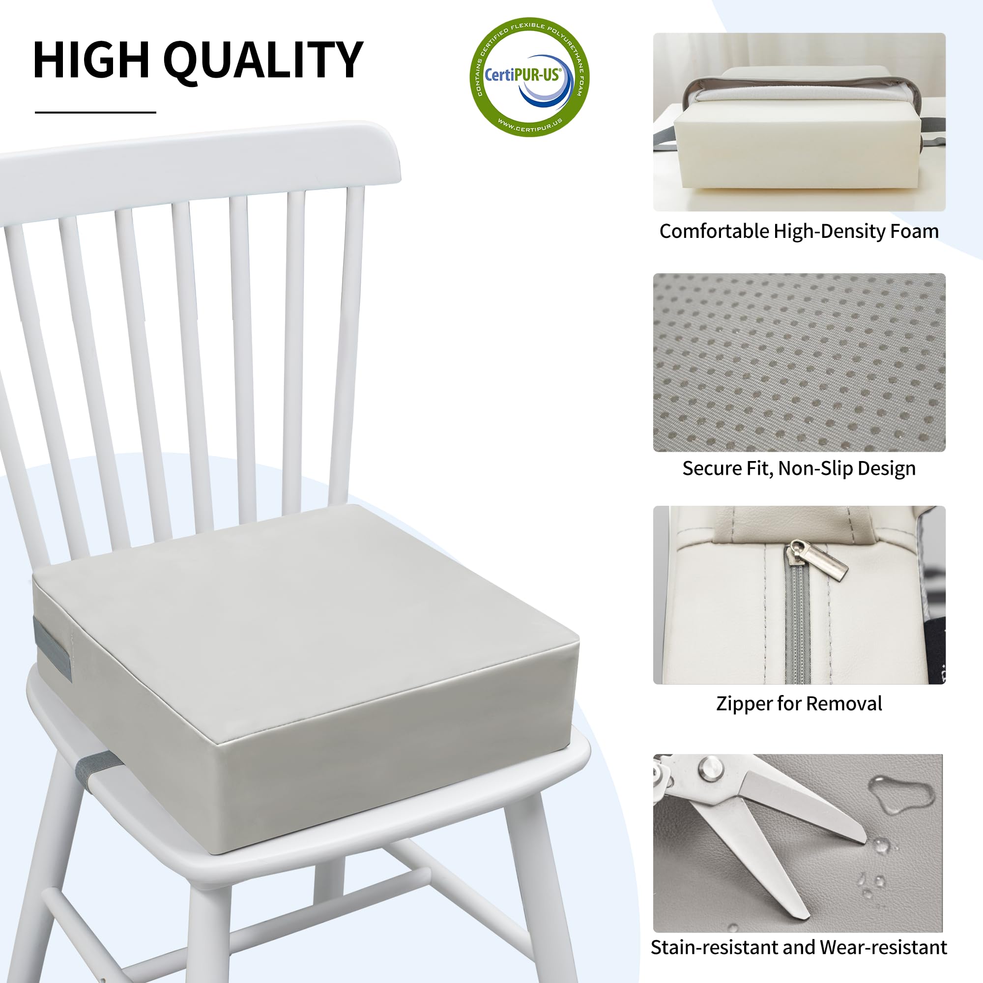 Comfortable Material: The booster seat for the dining table is made of high-quality PU synthetic leather and high-density sponge, and a layer of sponge is added inside the PU leather, which can not only bring comfort to the child but also ensure long-term use without deformation. The extra height also helps little ones reach food more easily and comfortably enjoy family meals at the table
