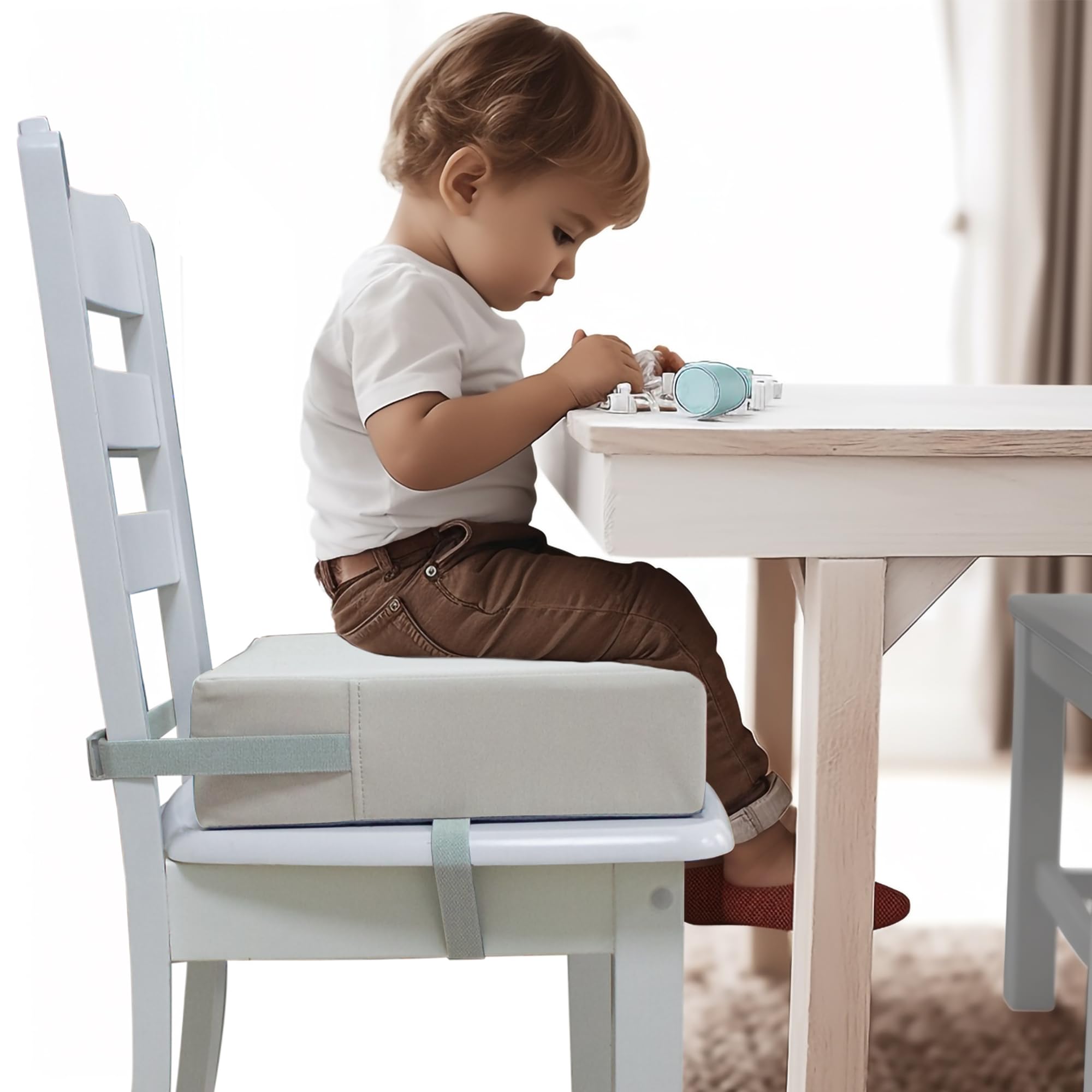 Safe and Anti-slip: Toddler booster seat for the dining table has two elastic safety belts on the seat cushion, which can be fixed on the backrest and bottom of chairs of various sizes, and the bottom of the seat cushion has non-slip silicone to ensure that the seat cushion will not slip. Double protection for children's safety while eating