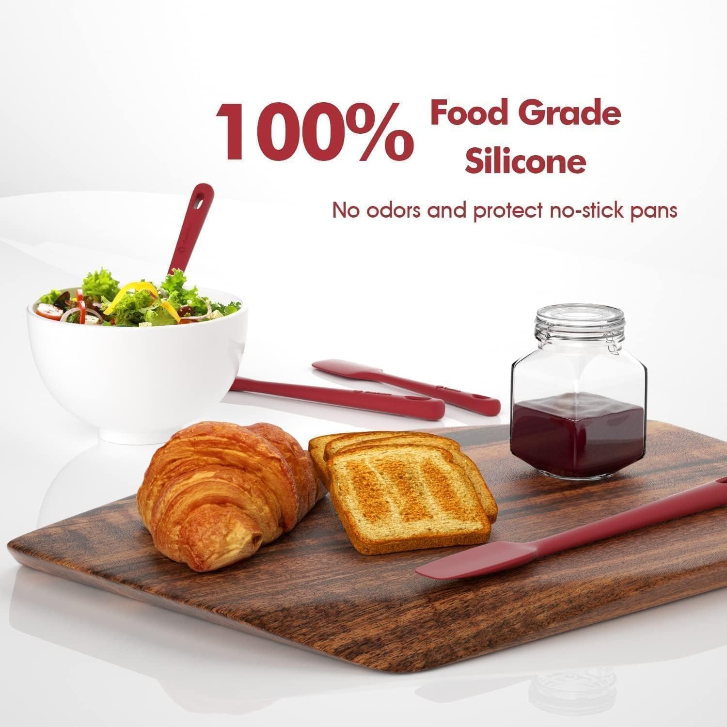 Premium 100% Food Grade Silicone: The silicone spatula set is made of healthy and friendly material, resistant to high temperatures. No more melting, cracking and worrying