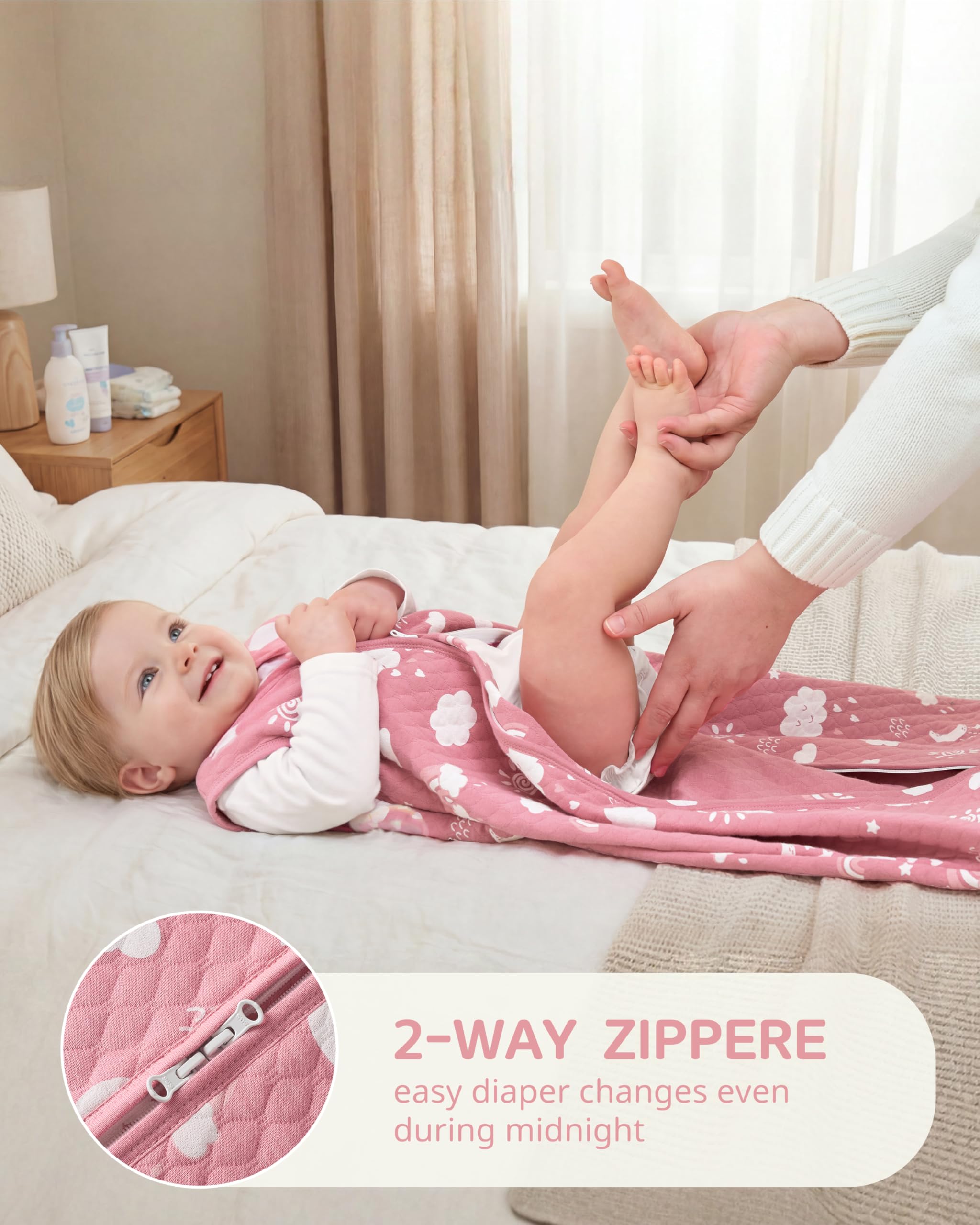 Double Zipper: Unlike traditional blankets or bedding, this Fiemol sleep sack features a convenient two-way zipper for easy diaper changes or outfit adjustments—without fully unwrapping your baby. Designed to make parenting life easier, you do not have to worry about kicked-off covers as the sleeping sack stays in place all night.