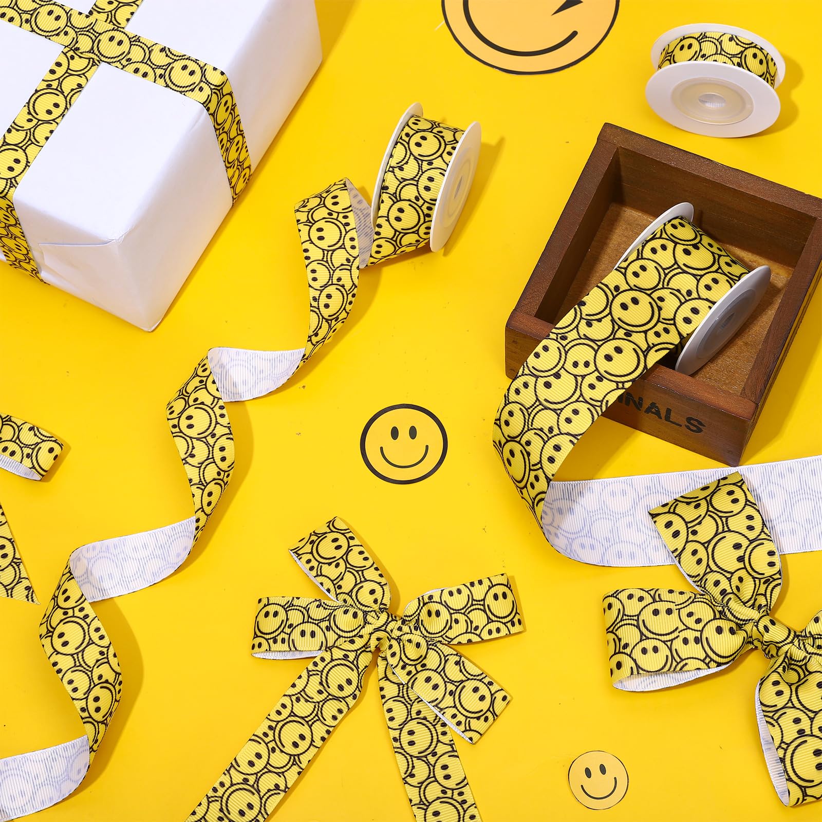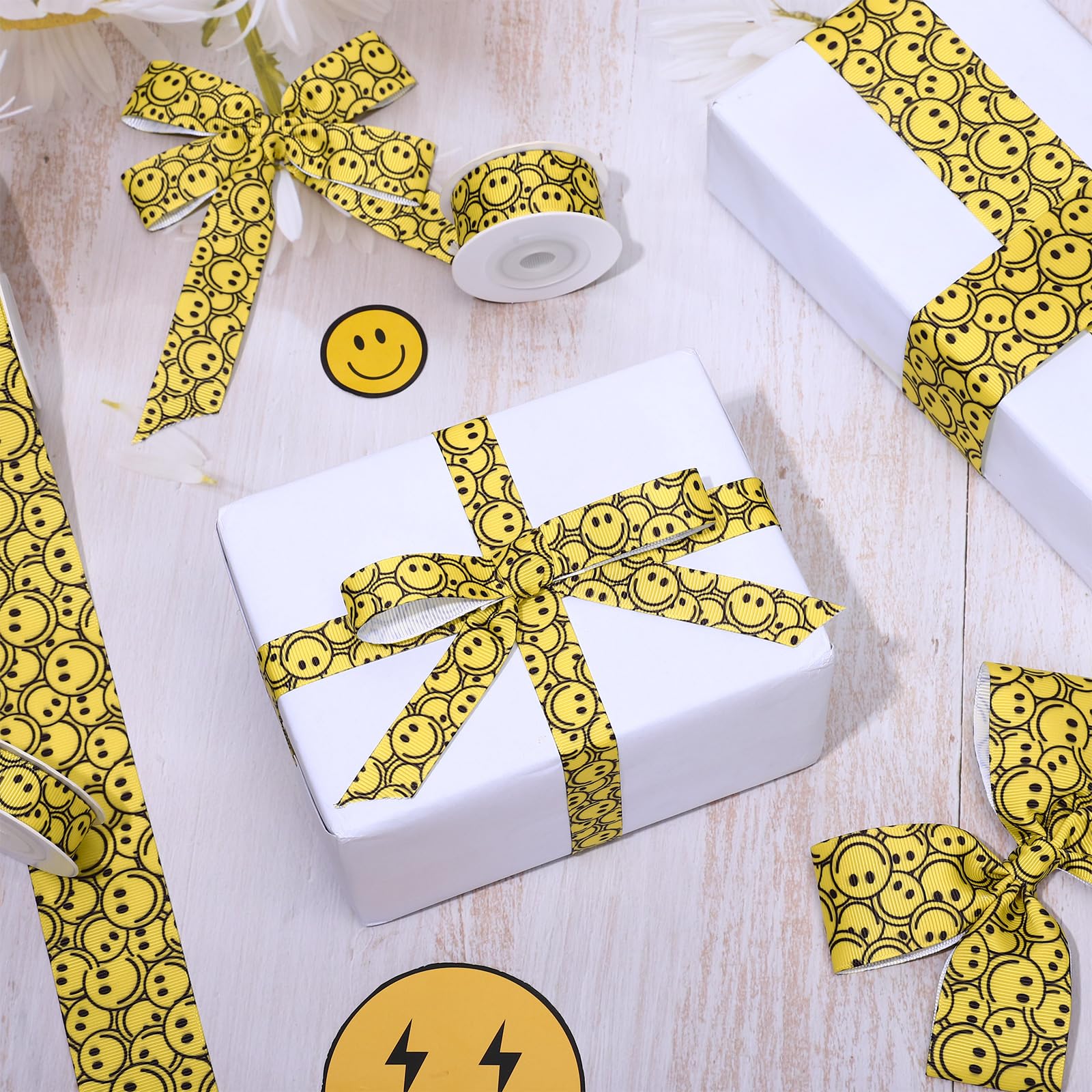 SMILE FACE GROSGRAIN RIBBON: Our ribbon rolls come with cute smile face patterns and bright colors, making it a great addition to your home and party.
