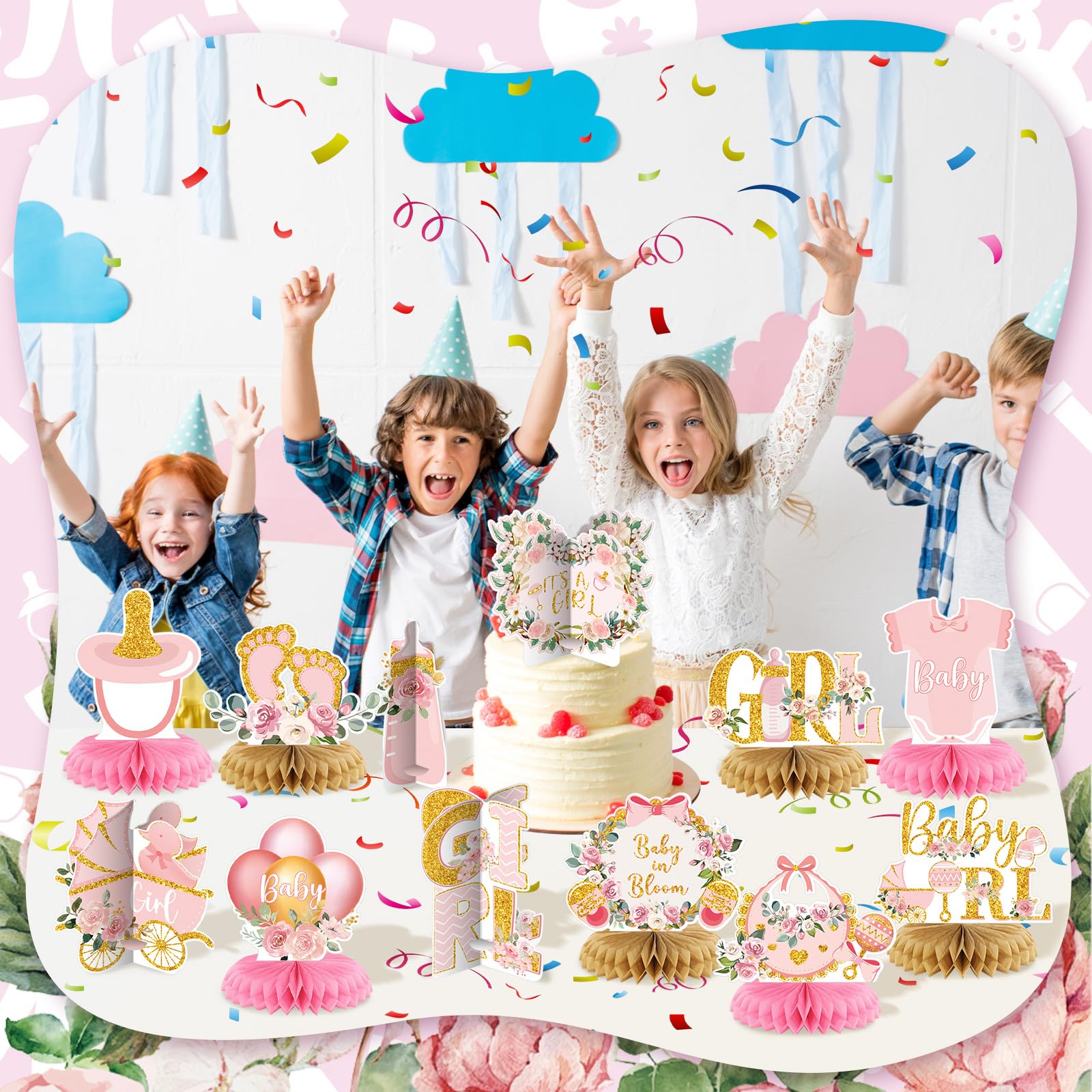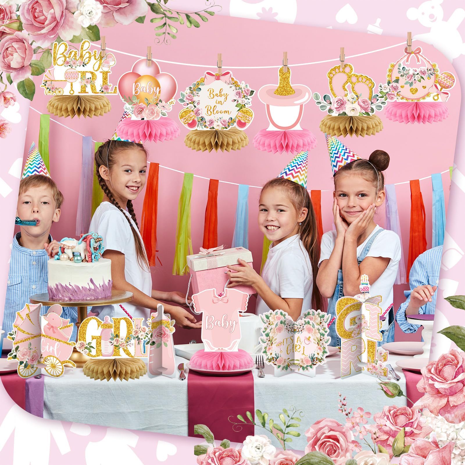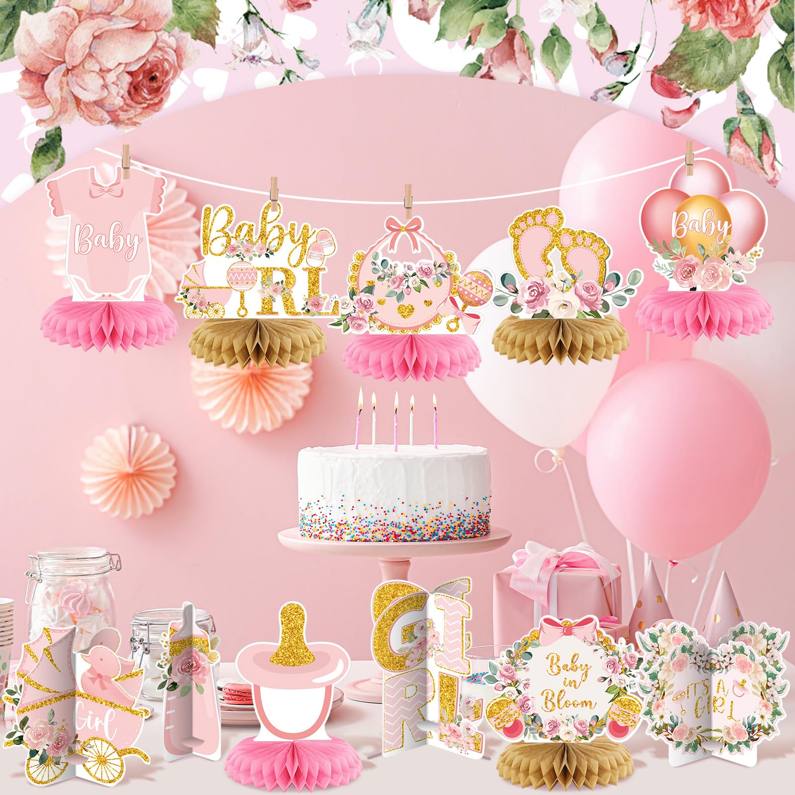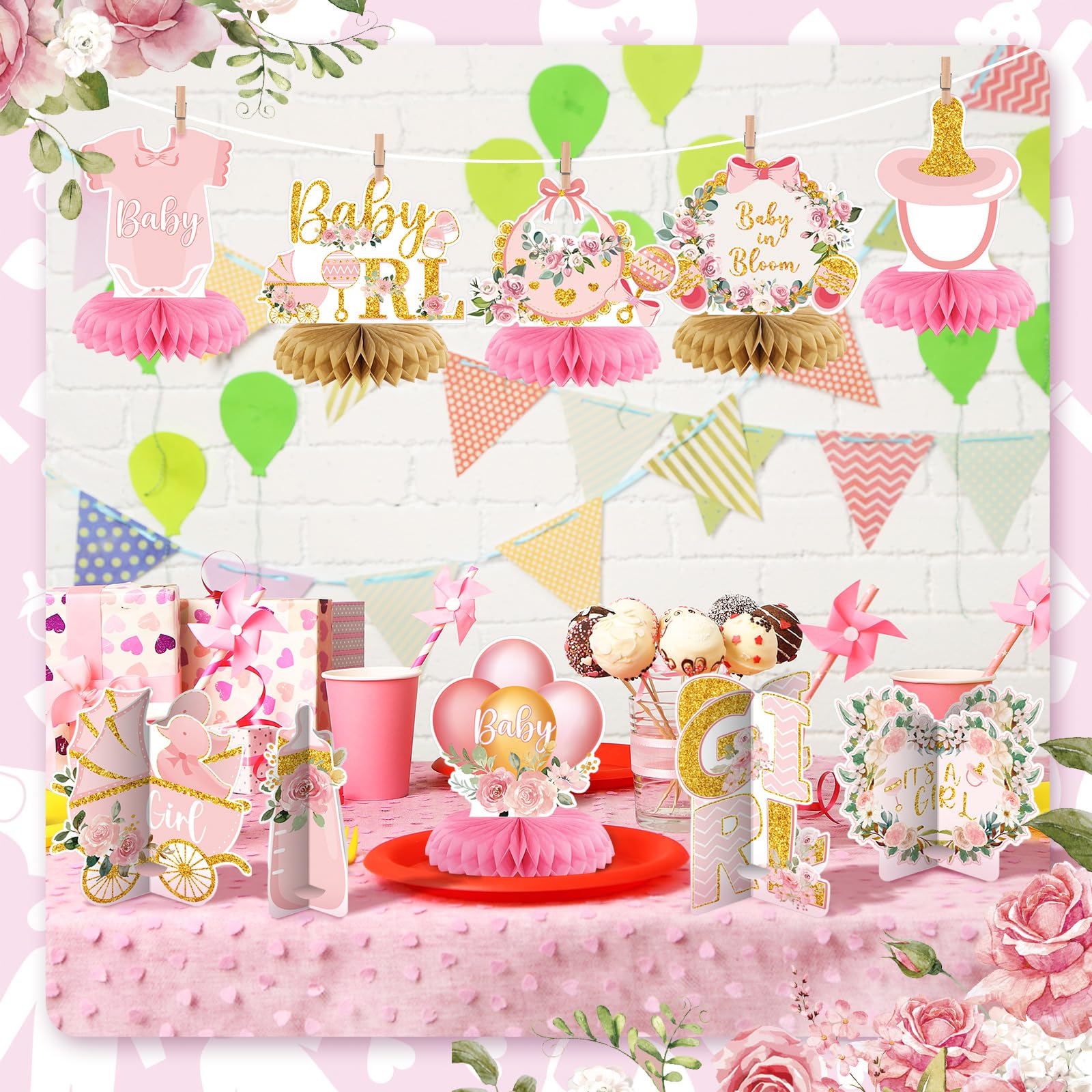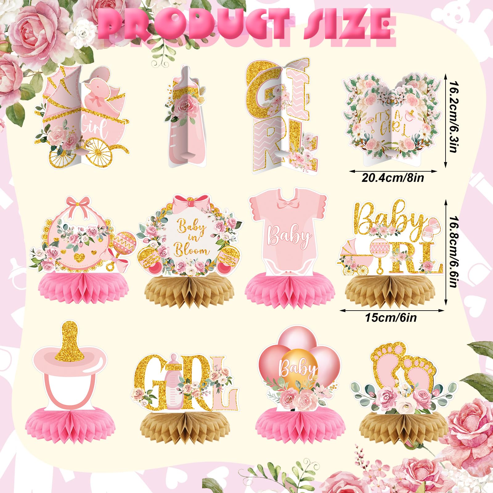 Packaging Information: there are 12 pieces pink baby shower honeycomb centerpiece, including pacifier, shirt, balloon, bottle, etc. Whether you are holding a small party or a large party, our packaging can ensure that the corner of your activity place is covered to enhance the atmosphere