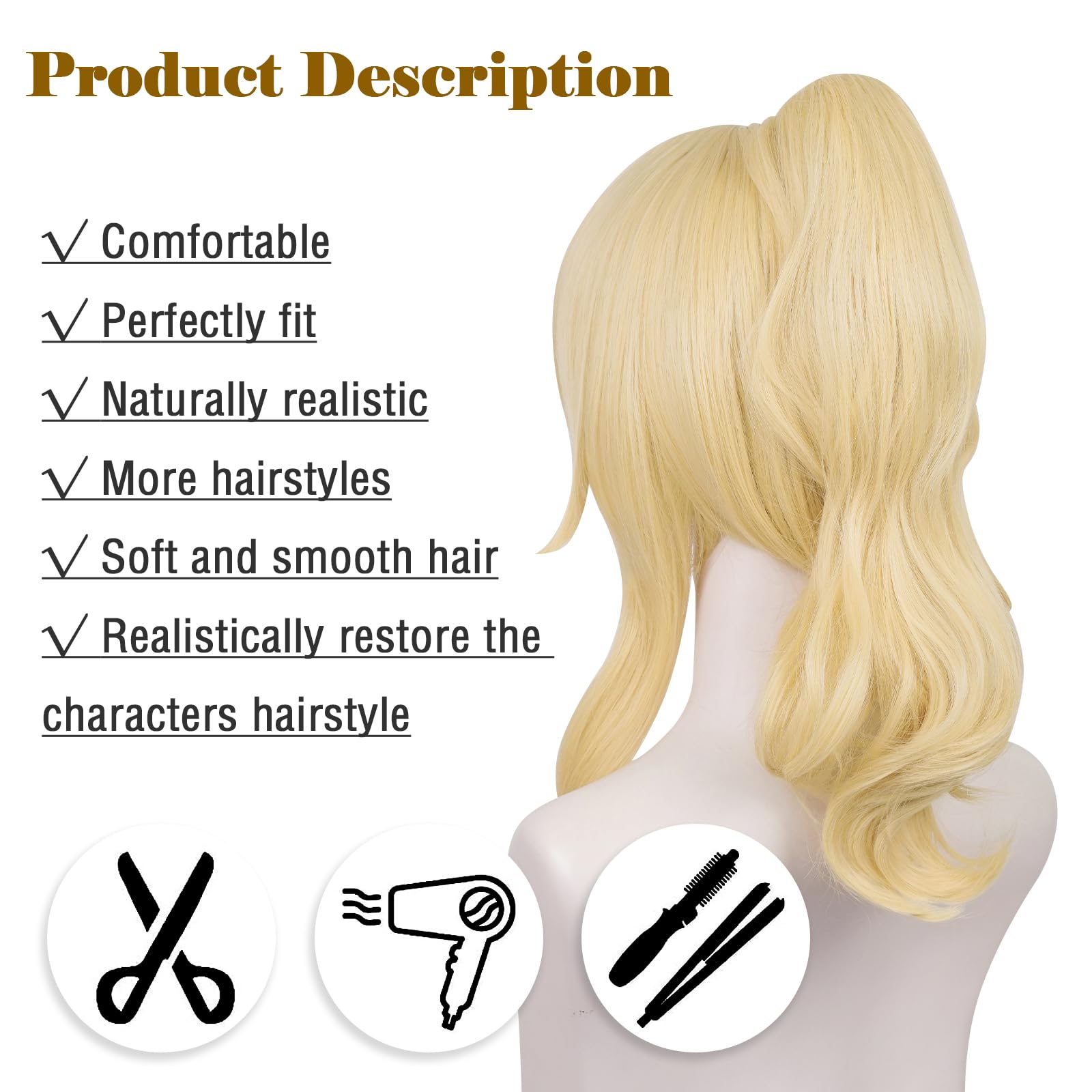 【Use】 - You can wear it for any occasion like formal, casual, entertaining. For example, in festivals like Halloween and Christmas, you can wear various wigs to celebrate, and you can also use it in parties in daily life. Wigs help you show a different image, it can add to your beauty.