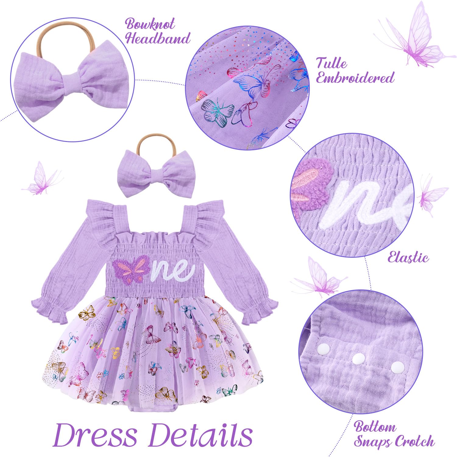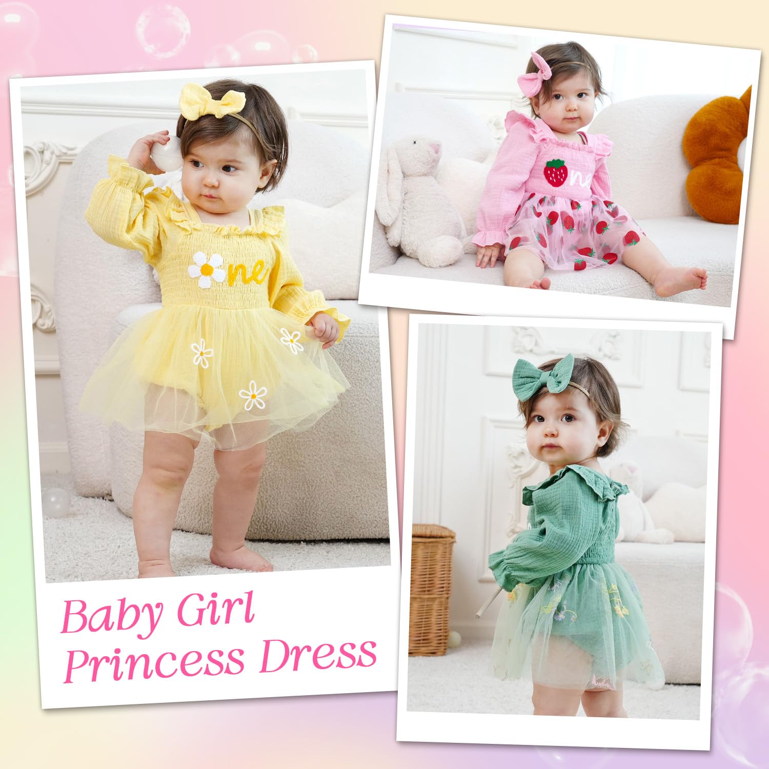 【Adorable Design】Our 1 year old girl gifts is exquisitely designed and adorable, with a square neckline and embroidered "one" pattern on the chest to highlight its uniqueness. The baby qirl dresses is made of delicate embroidered mesh, which not only allows for breath but also adds elegance, making your girl sweeter and more charming