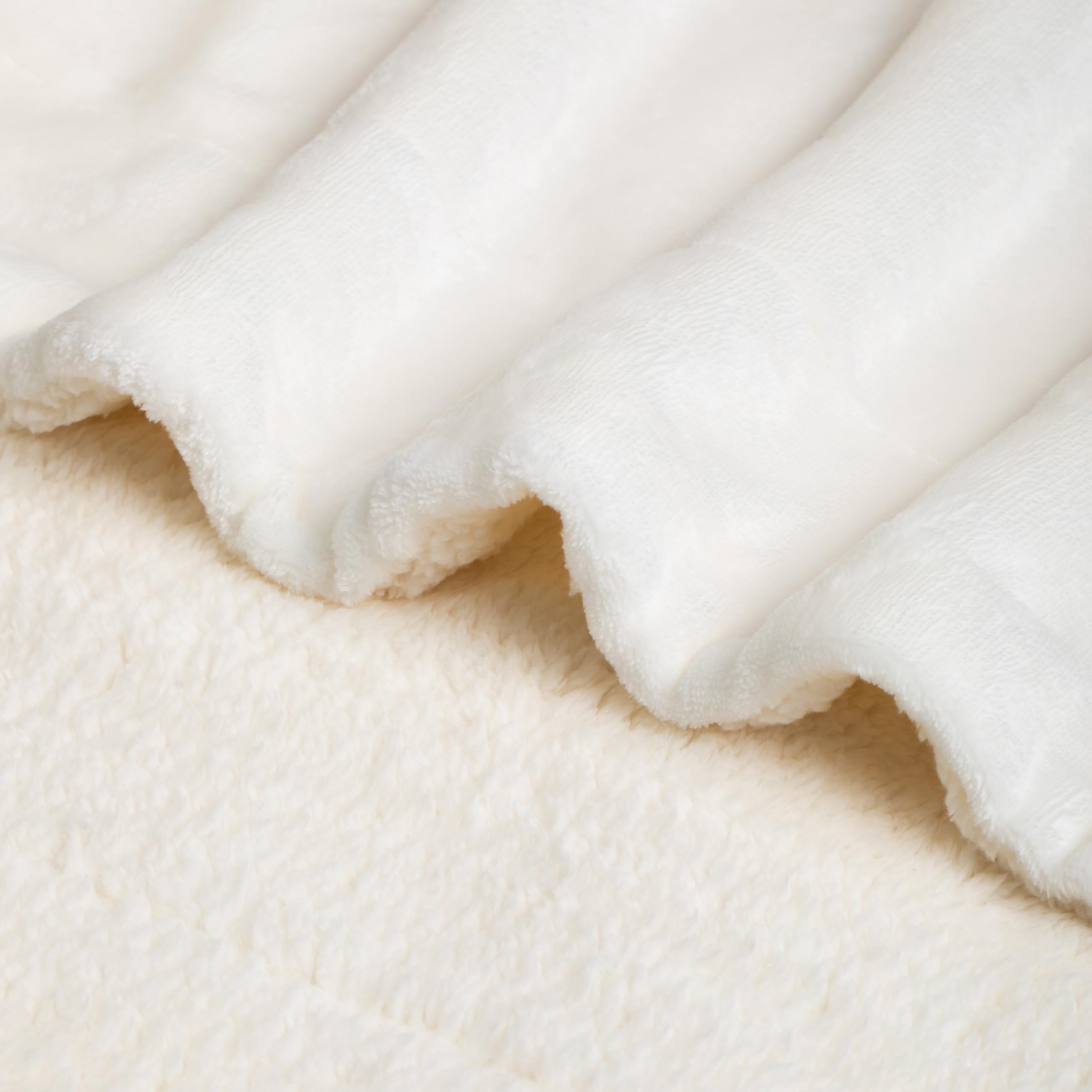Dual Texture Comfort with Sherpa Trim: Embrace the velvety softness of chenille on the front, complemented by the cozy warmth of sherpa on the back, adorned with sherpa trim on both sides. Sized at 36 x 48 inches for a snug embrace, ensuring comfort from every angle.