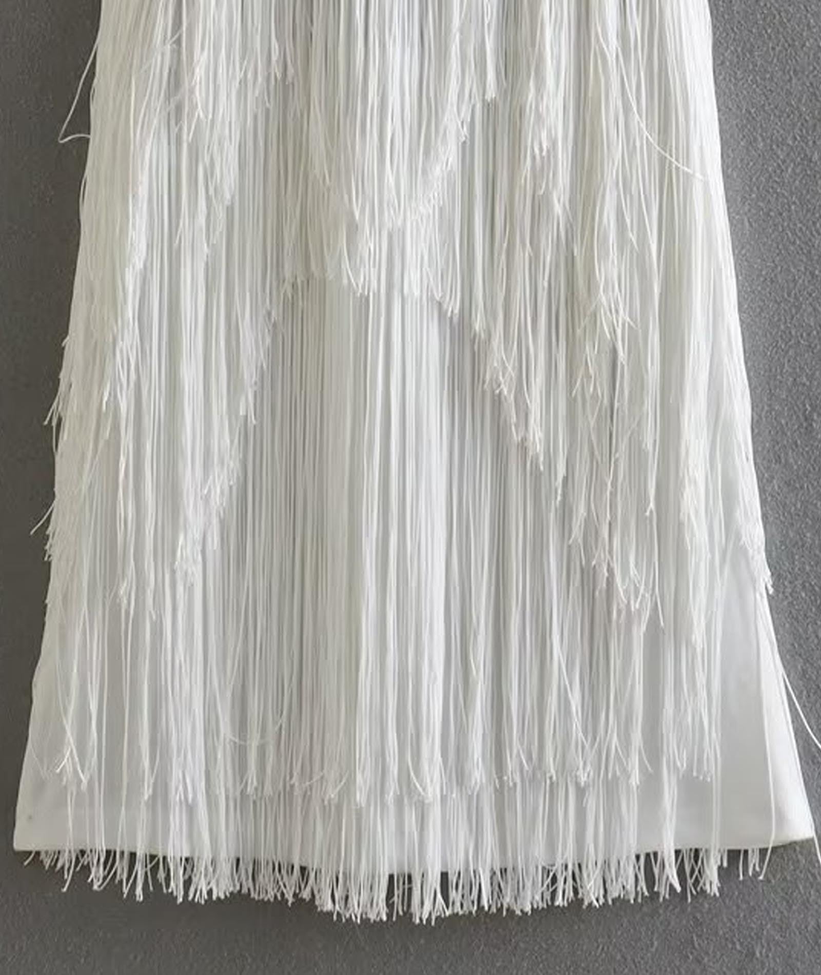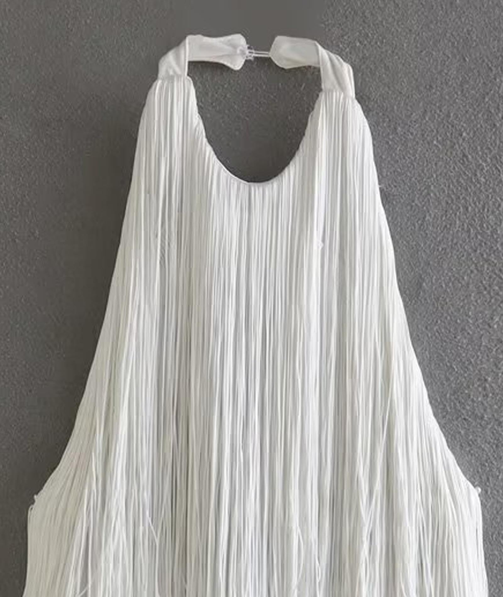 ★ Design: Round neck, Button up neck design, Sleeveless, Sexy backless, Natural waistline, Diagonal tassel design, Solid color, Shiny tassel design, A fantastic, Elegant and stylish mini dress, Reminiscent of the roaring '20s.