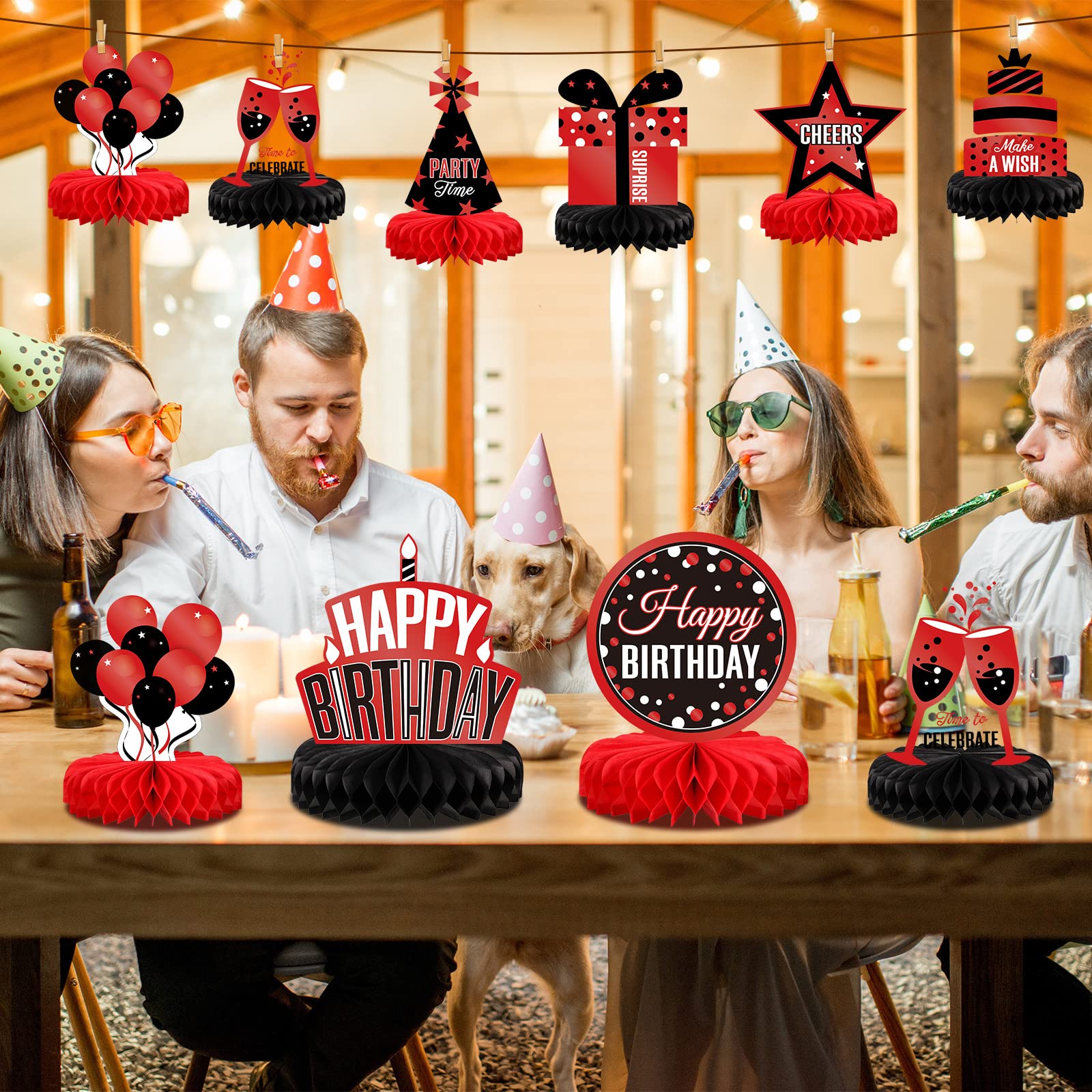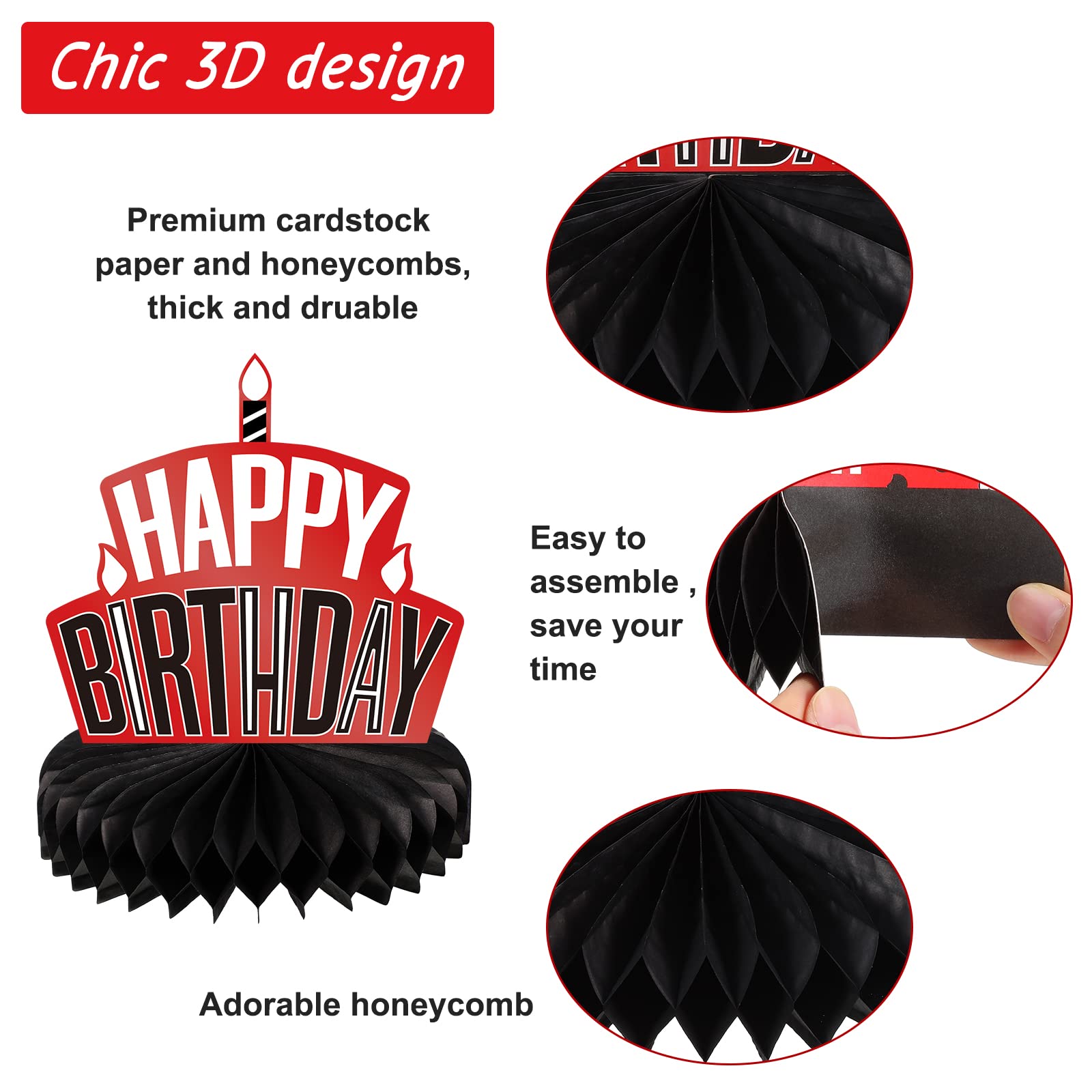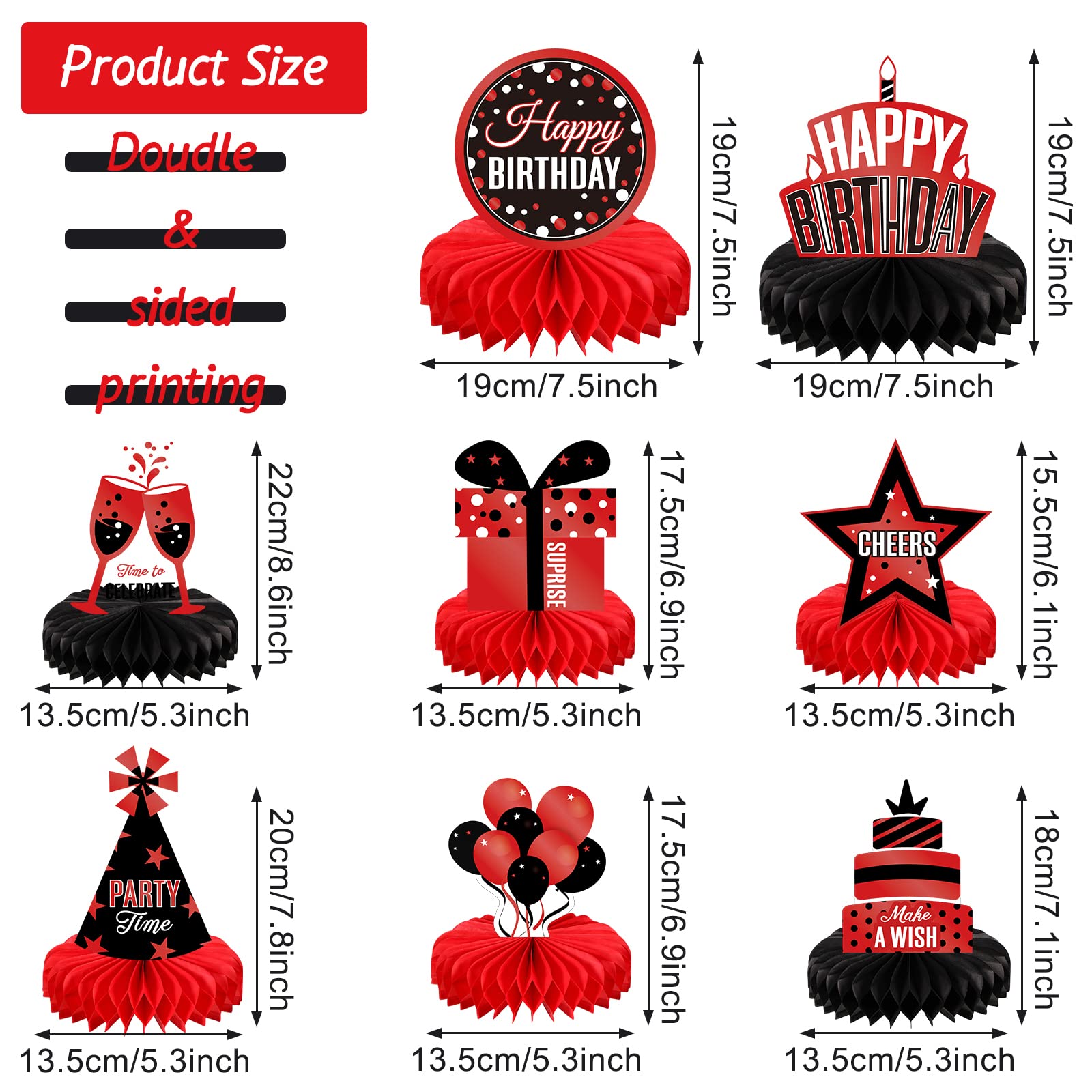 Package Includes: you will receive 8 red black birthday party honeycomb centerpieces in 8 different designs, sufficient quantity and various styles to meet your birthday party decoration needs and make your birthday themed party a hit