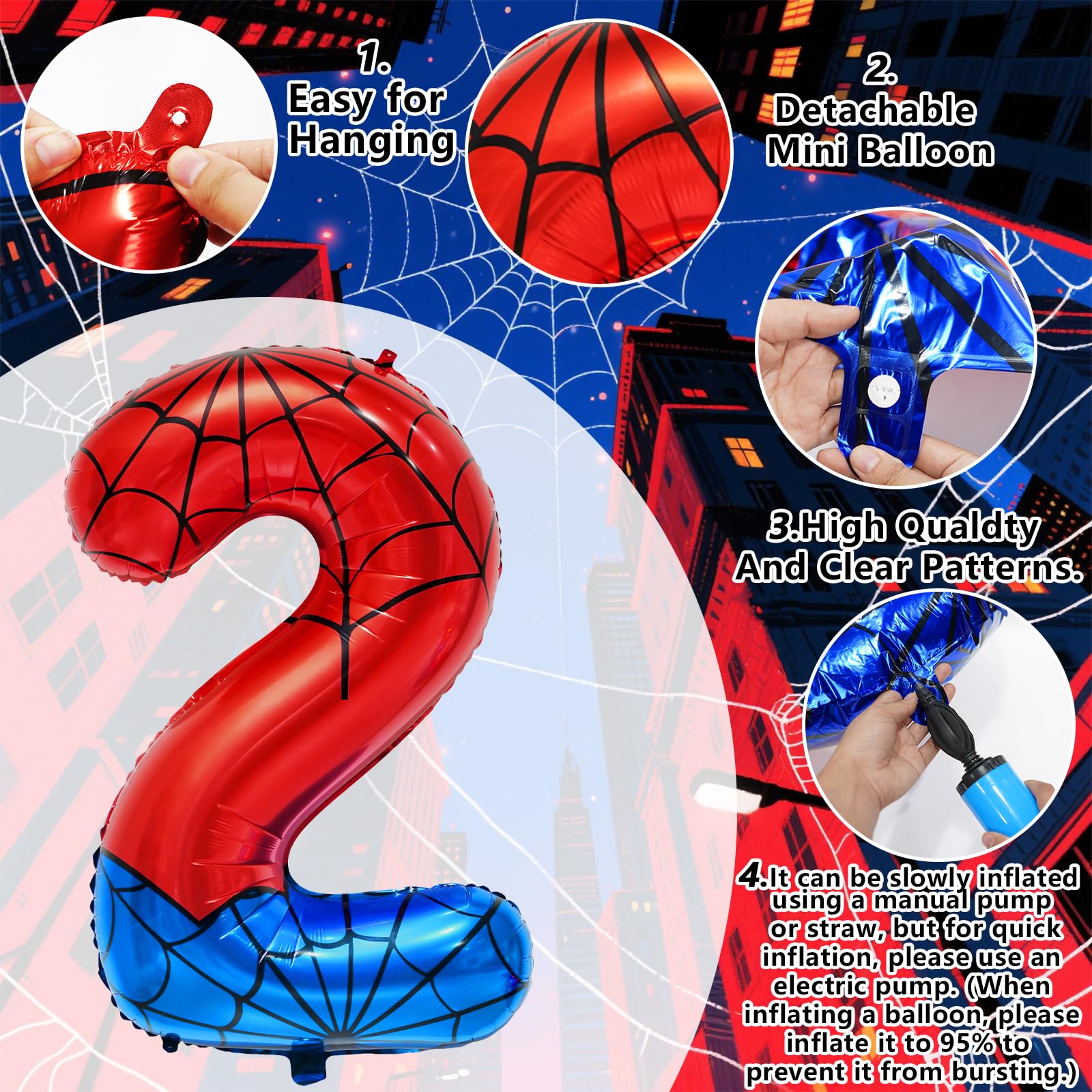 DUAL-COLOR DESIGN: red and blue color scheme with intricate spider web pattern detail for a superhero-themed aesthetic,Give the child a striking age statement!