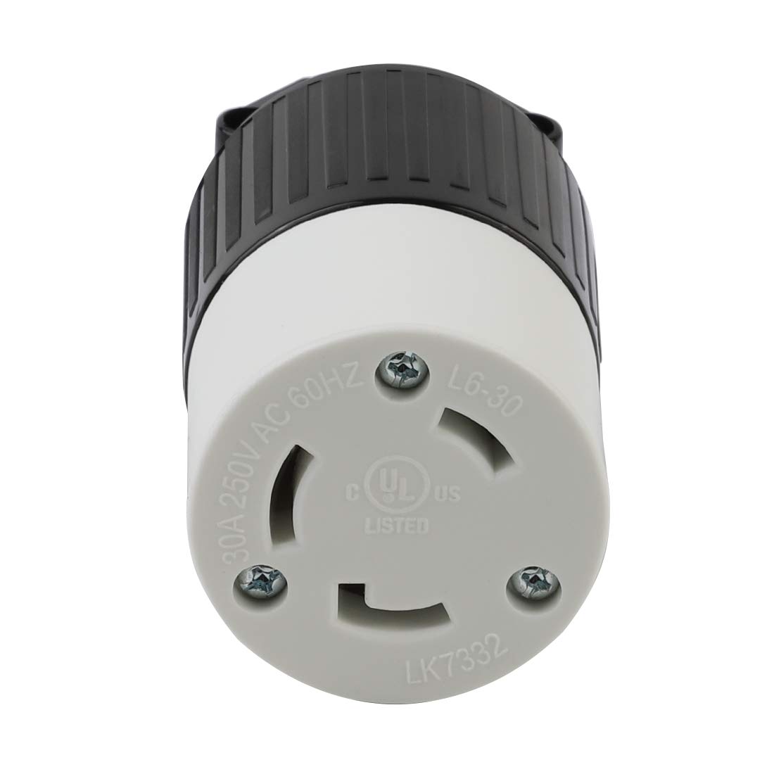:Specification . Nema L6-30R Female Straight AC Connector . Rated @ 30A 250V . Comply with American cord SJT 18AWG,16AWG & 14AWG 12AWG 10AWG cable . Material: Nylon+Copper . Black color