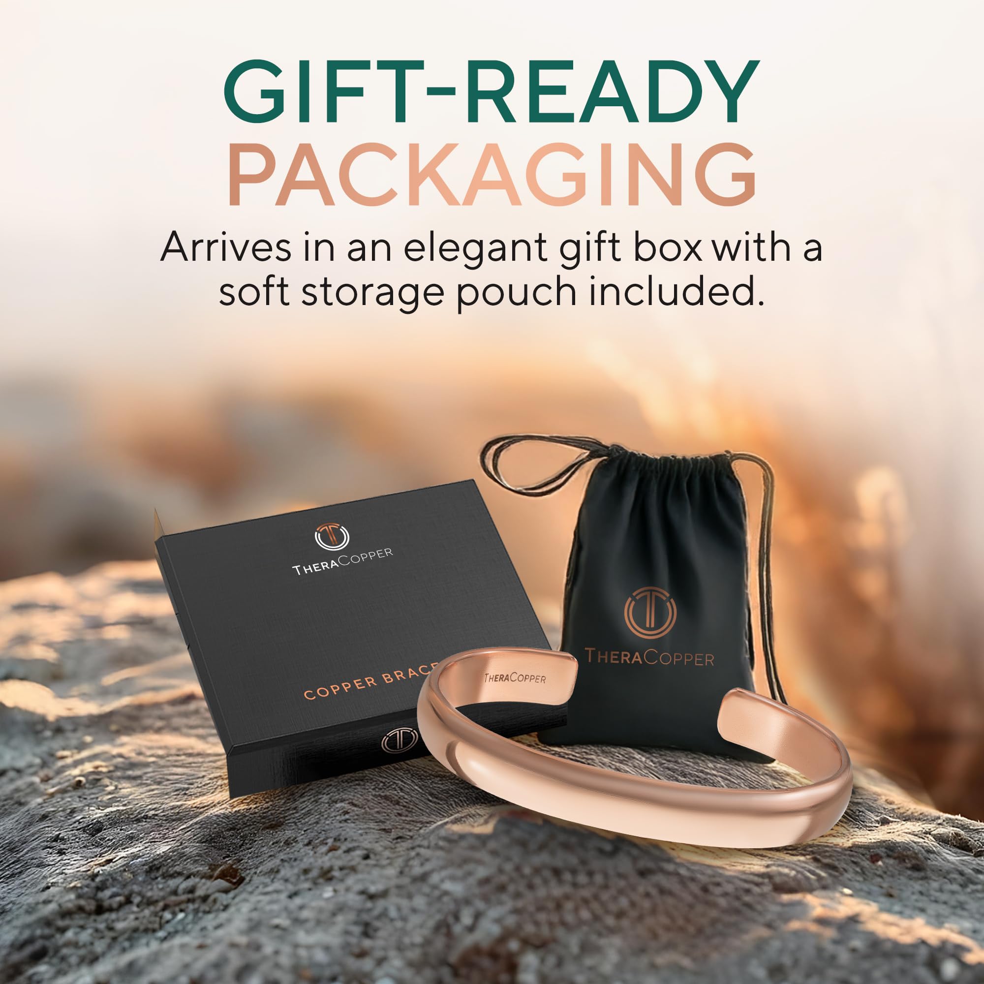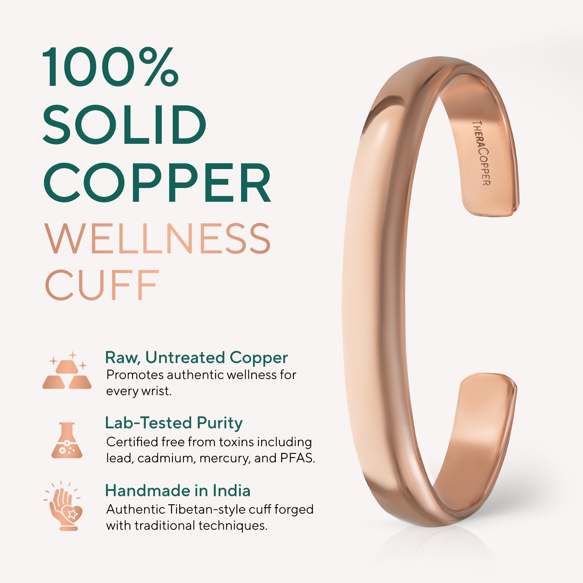 THE PUREST COPPER: Handcrafted with 100% pure copper, our real copper bracelet is lab-tested and certified free from harmful metals like lead, nickel, cadmium, and PFAS. Many alternatives use cheap, mixed copper or plated bracelets with toxic coatings—TheraCopper is completely natural, untreated, and safe. Over time, your pure copper cuff bracelet will develop a natural patina, a hallmark of authentic, untreated copper—not a defect. Simply restore its original shine with salt and lemon juice or any copper cleaner.