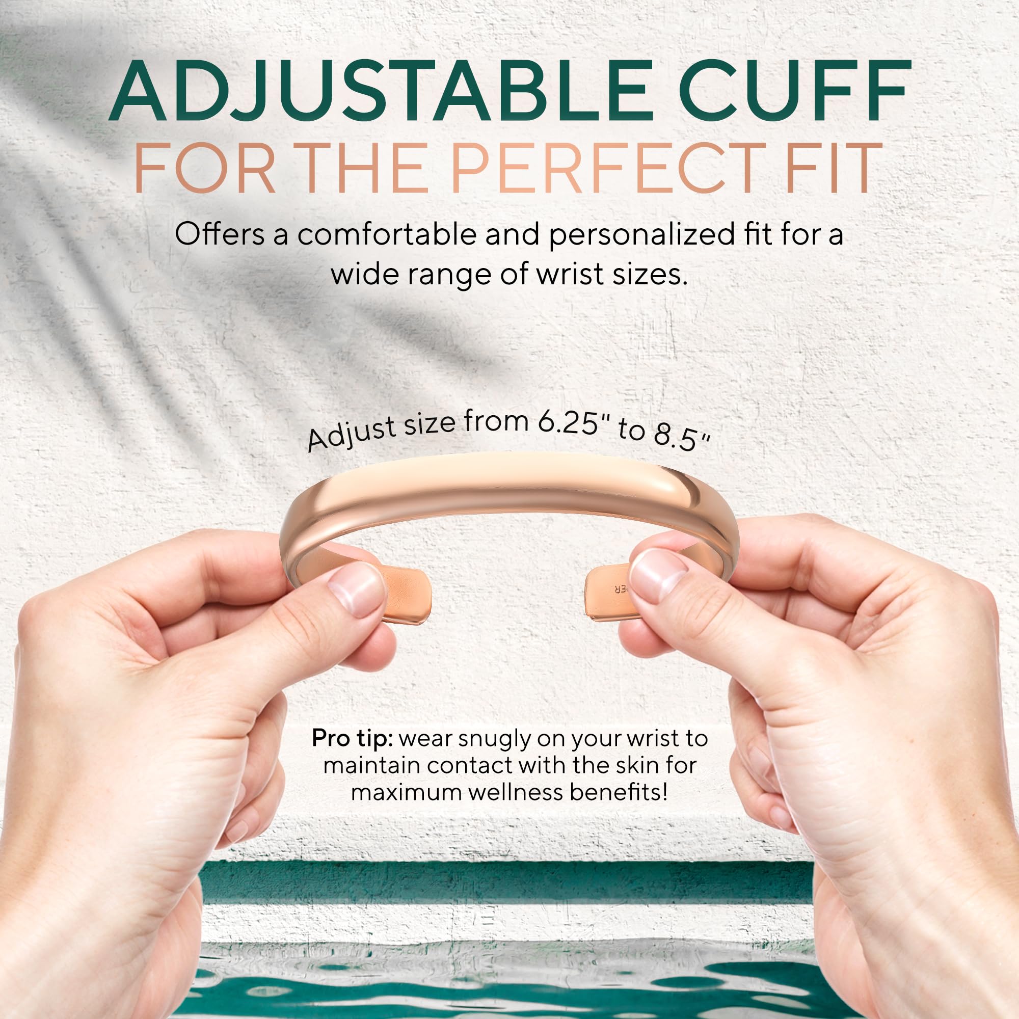 ADJUSTABLE FIT: Designed for all-day comfort, our open-cuff copper bracelet easily adjusts to fit wrist sizes 6.25" to 8.5" (SMALL to X-LARGE). Whether it's a womens or mens copper bracelet, the customizable fit ensures a secure yet comfortable feel without compromising style. A perfect choice for those who appreciate the timeless charm and wellness benefits of real copper jewelry for women and men.