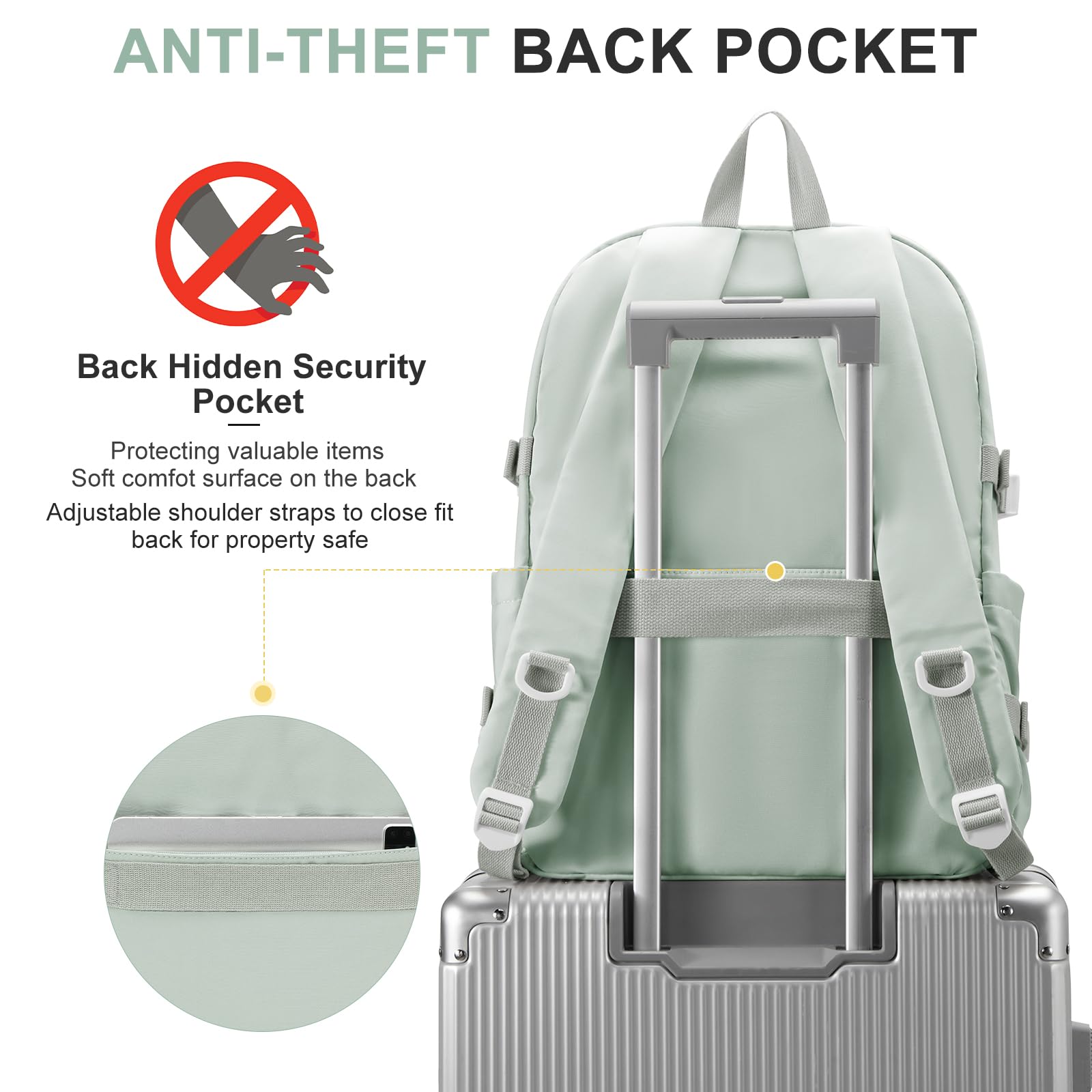 【Comfortable&Convenient】This backpack is ergonomically designed. The adjustable padded shoulder strap is very comfortable and does not put too much strain on the shoulder even if it is carried for long periods of time. Back design zipper pocket, anti-theft design, to ensure safety, can store mobile phones, wallets and other important items. The back of the backpack has a luggage strap that slides over your suitcase's upright carry handling tube, freeing up your hands for easy carrying.