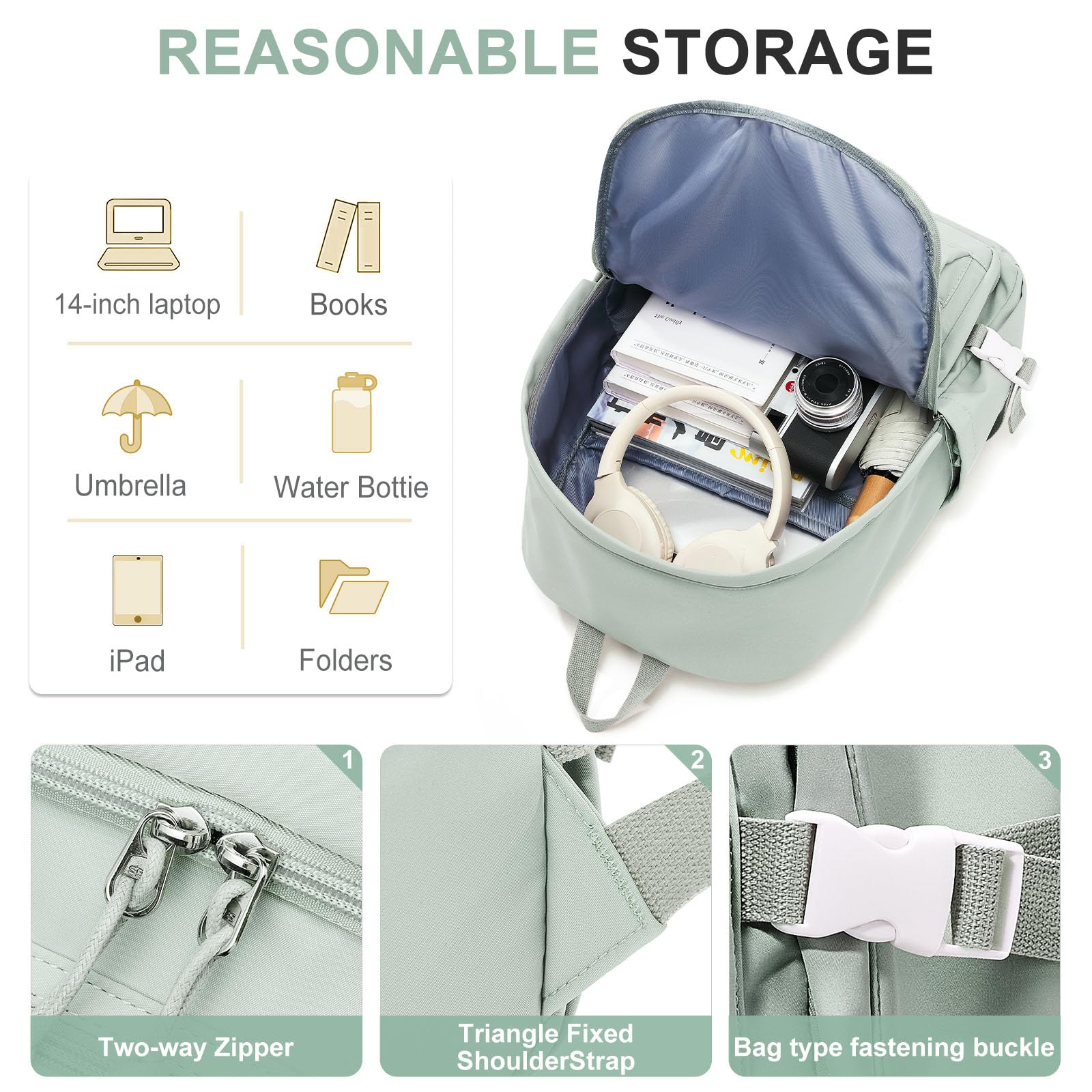 【Large Capacity】 This backpack offers a lot of storage space and is perfect for everyday use. The backpack has four pockets of different sizes, so you can put your laptop, iPad, power bank, camera, books and anything else you need, and keep it organized. In addition, there is a separate computer compartment in the main pocket that can hold up to 15.6-inch laptops.