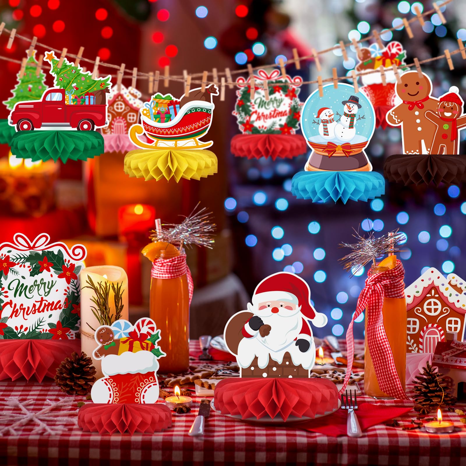 Elevate your next birthday or holiday gathering with our eye-catching Merry Christmas party decorations. Our Christmas honeycomb centerpieces, featuring vibrant colors and adorable patterns, are sure to inject joy and festivity into your celebrations. Ideal for kid's parties, baby showers, or any themed festivity, these chic decorations make your moments unforgettable. Dive into a world where every celebration becomes photo-worthy with our captivating additions.