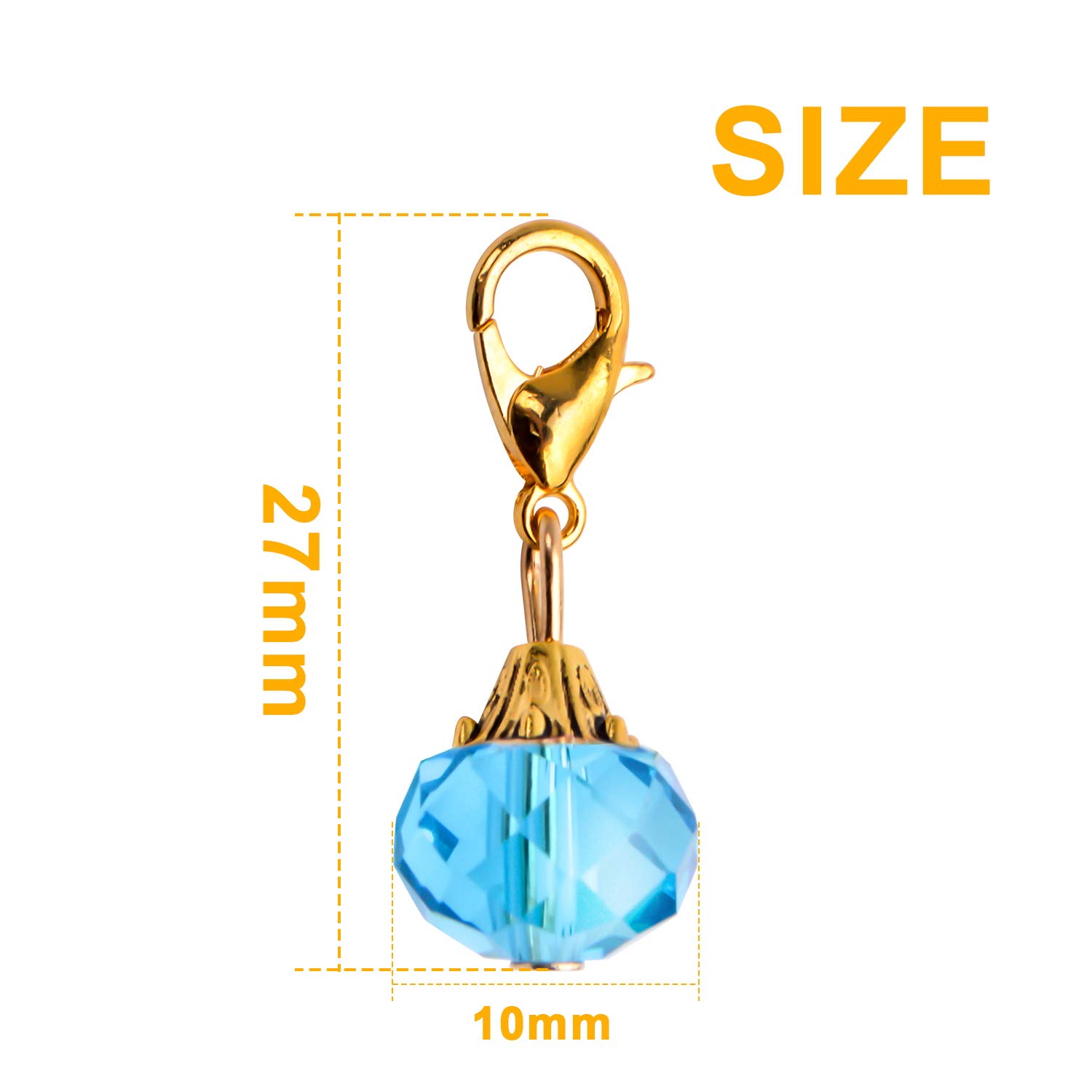 24 Pieces Crystal Dangle,12 Colors Faceted Crystal Dangle Charms Glass Pendant with Gold Lobster Claw Clasp for Keychain Purse Decoration Specification Crystal color : 12 colors Material : Metal and glass Crystal Length of crystal : 10mm Length in total : 27mm Characteristics EYE CATCHING LOOKS: With 12 colors, the crystal is attached to the metal lobster clasp. It is not only beautiful but also practical. PERFECT DECORATION: Great decoration for home and office. Perfect DIY jewelry as gift for your friends and families. Package Content 24 * Crystal Dangle with Lobster Claw Clasp
