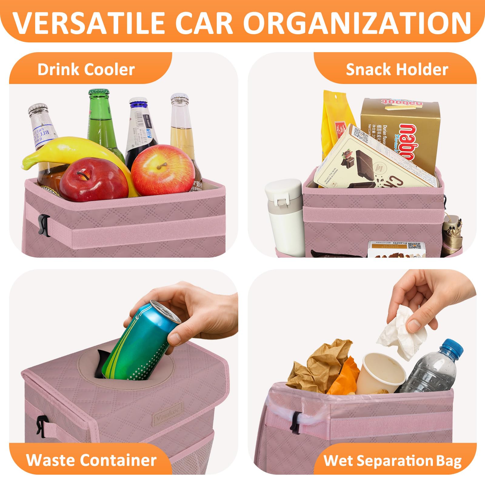 Wide Compatibility: An thoughtful solution for people who have the need for car neat and car interior storage; Perfectly fits varieties of types of vehicles including sedans, SUVs, RVs, trucks, vans, minivans, boats, campers, taxis, buses, etc; Auto trash can for car is very sturdy , has a long service life, and is very convenient to carry; The car trash can for the back seat is foldable, when you don't need it, just fold it up without taking up any space