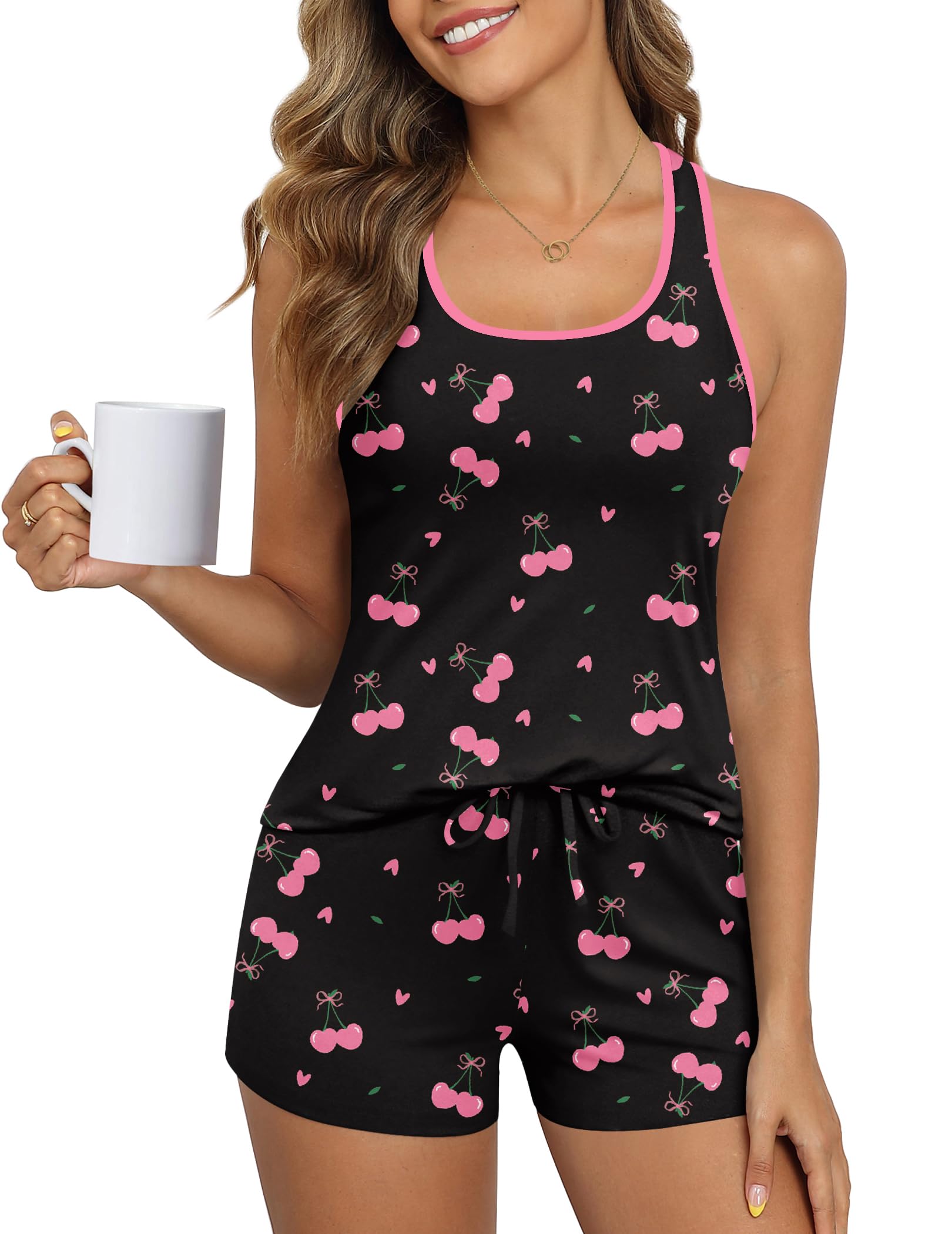 FEATURES: The top of sleeveless sleepwear features a classic racerback with contrasting color edges at the neckline, simple and stylish. The comfy short is designed with an elastic waist and drawstring, it is easy to put on and take off.