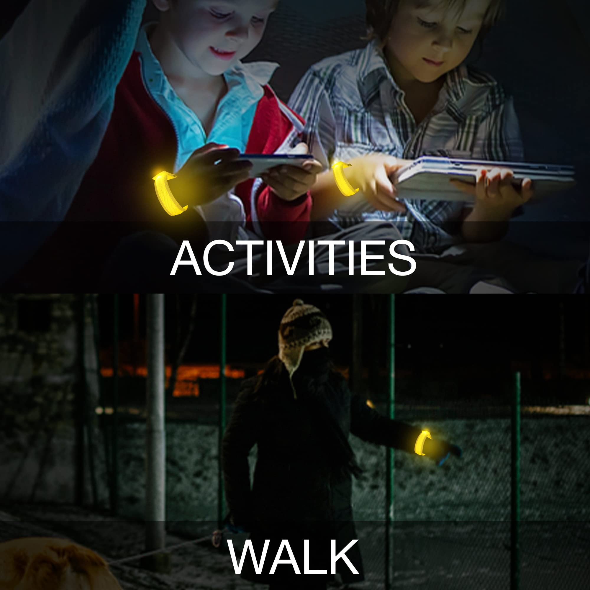 【Multi-Usages】:Nicely visible while walking, riding, running, or on a motorcycle at night. Secure enough that you don't have to worry about it flying off at higher rates of speed. Also perfect for dog collar when night walking. Great party supplies. Enough for you to share with your families and friends. Kids always love this light up bracelets. Age grading: 3 + years old