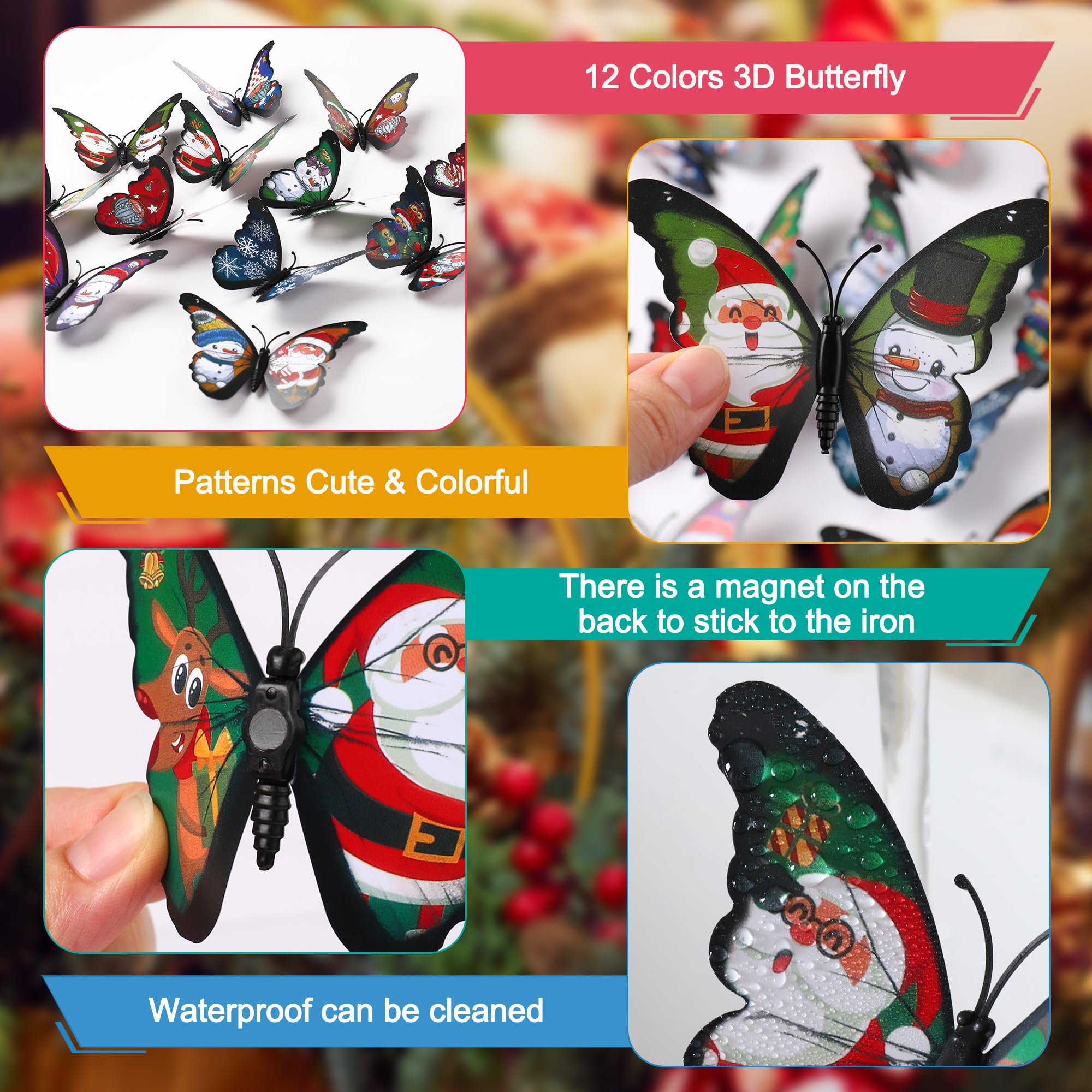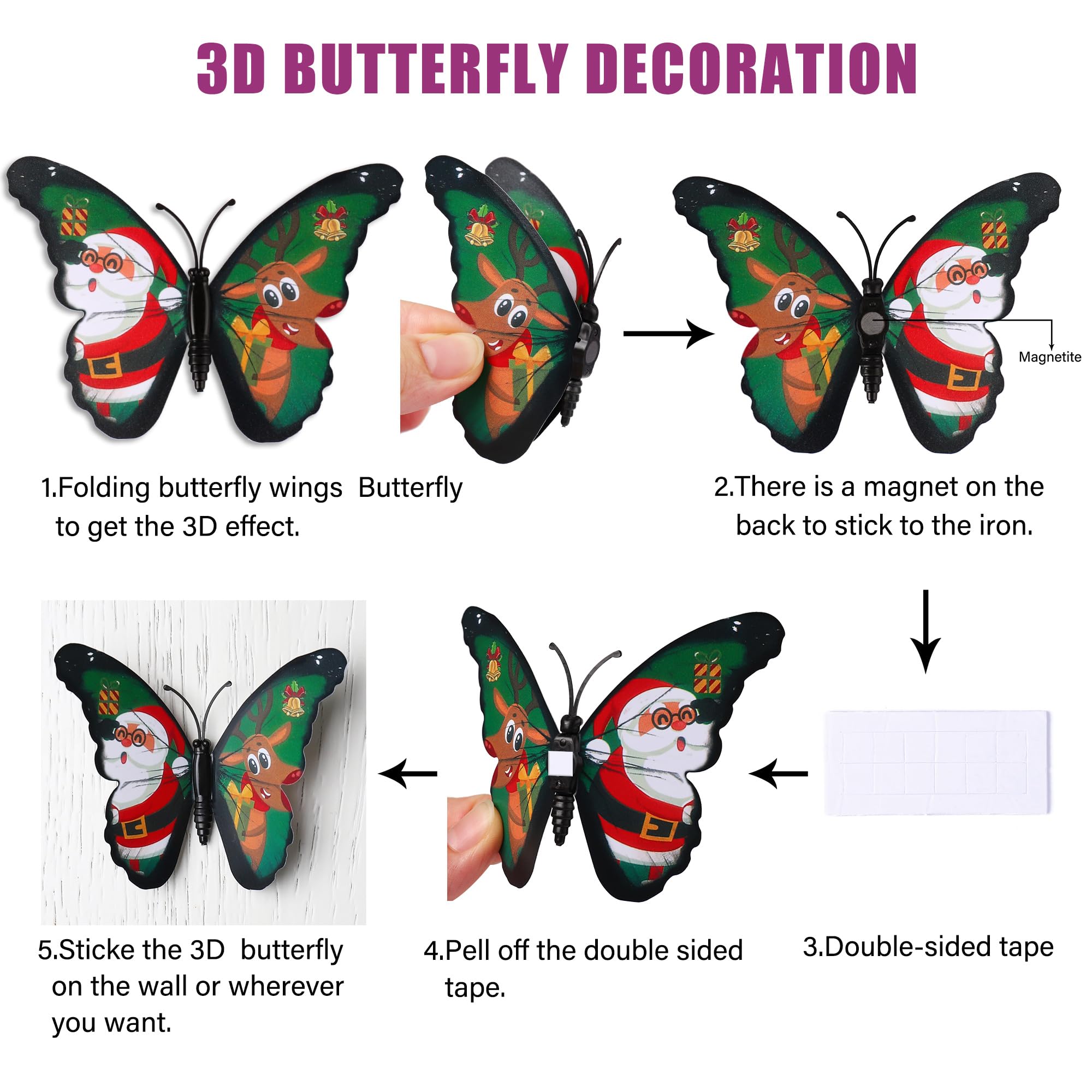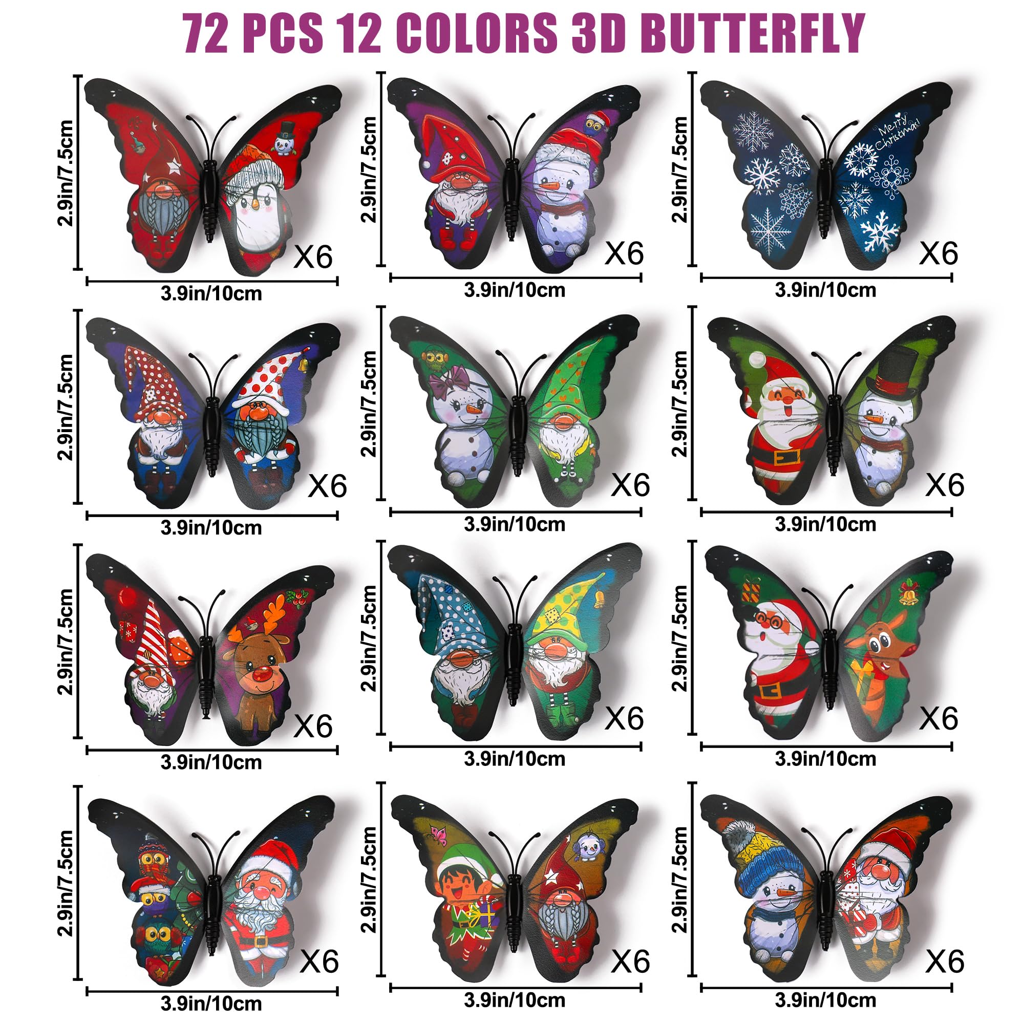 Features: 1. 100% brand new and high quality 2. 12 Blue+12 Purple+12 Green+12 Yellow+12 Pink+12 Red, totally 72pcs 3D butterfly stickers mixed packing 3 perfect gift for any special occasions like Christmas, wedding, birthday, anniversary,engagement, new-born baby Instructions: 1. Ensure the surface is smooth, do not stick on the rough or uneven surface. 2. Choose the place you want to apply, clean up the ash and grease, keep it dry and clean. 3. Use double-adhesive foam and stick the butterfly to the place you want them be.