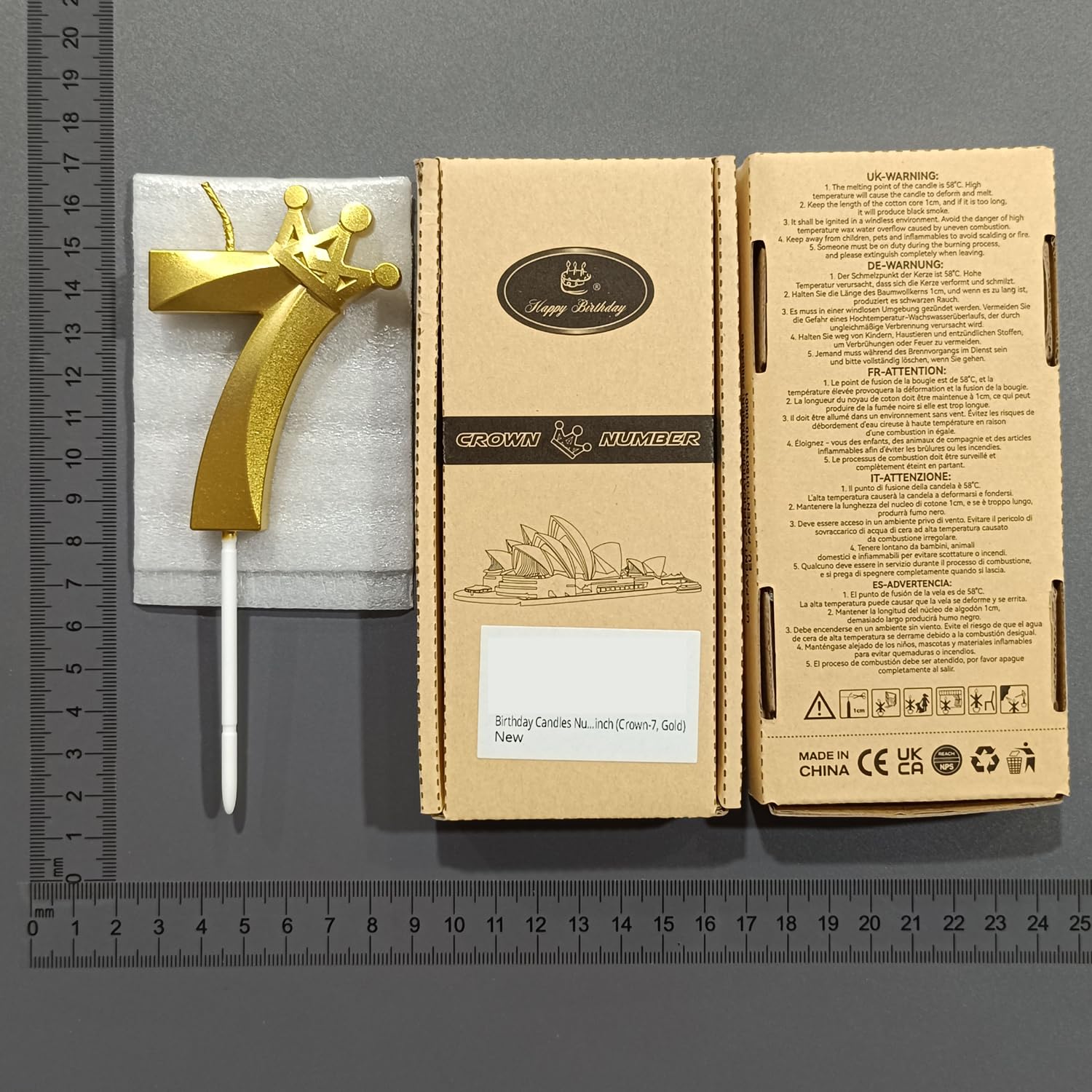 Jumochi 3D Crown Birthday Number Candles You don't need to have great cake decorating skills, you can still make your cake look beautiful with our candles. Pros: The size is suitable for lots of cakes. The bright gold color is beautiful. The little crown is cute. Long plastic stick do not easy to tip over. It is washable and reusable. Burns slowly, you can keep the candle in a memory box after birthday. Good Packaging. Candle came in a sturdy box, placed within a plastic insert that cradled the candle safely. Versatile Number Candles: You can buy birthday candles of all ages, even if you don't want others to know your age, you can choose question mark ? candle. Material: Wax Candle Dimension including stick: 5.7 x 2.25 x 0.4 Inches Weight: 0.1 lbs What’s in the package: 1 Numeral Candle Be careful - Numeral candles are flammable. Keep away from fire when candles are not in use. Keep away from children when candles are burning.