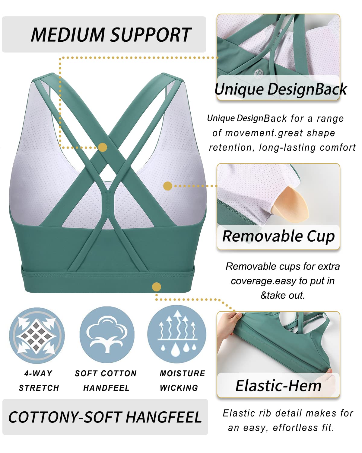 CRISS-CROSS BACK FULL COVERAGE DESIGN:Sexy back bringing more attention to the crisscross double strap back feature.Elastic Double Strap Bra features a sultry full coverage and double layer fabric for enough added support.Stretch Fit Sports Yoga Gym Bra Push up & Padded with removable pads for convenient adjustment, with a cotton-like meterial, soft and comfortable to wear.