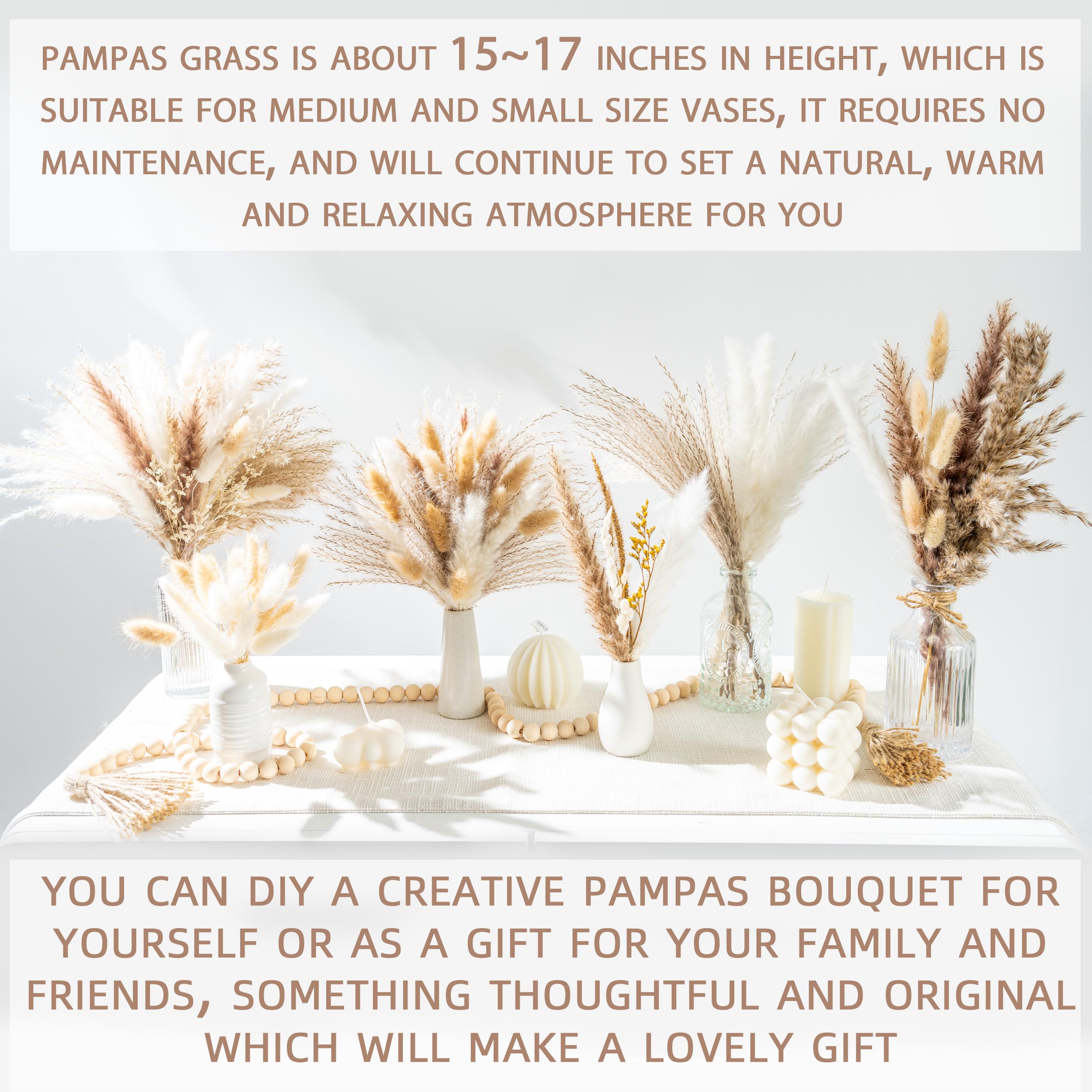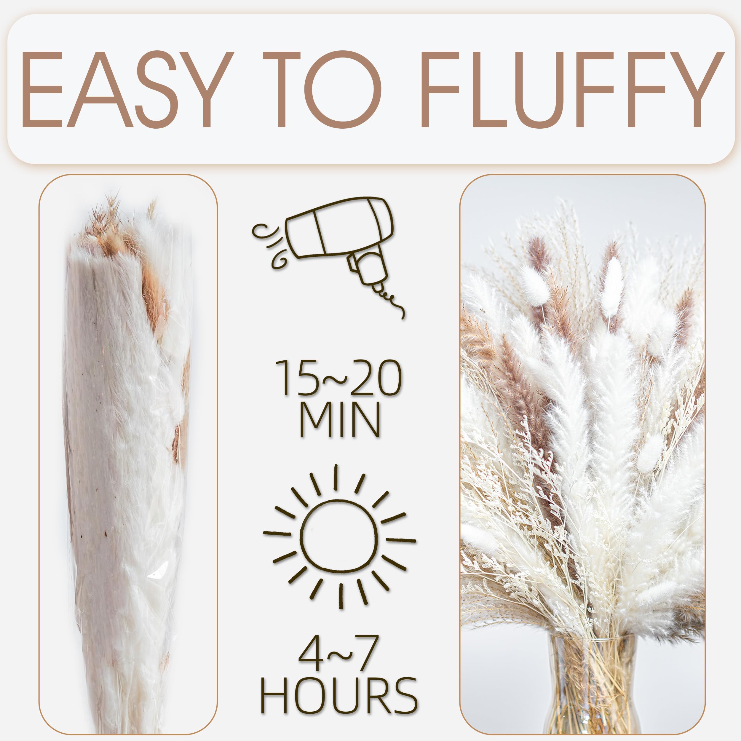 ❁EASY AND LOW-MAINTENANCE - Easy to maintain simply lightly shake,Leave the pampas grass in the sun for three to six hours to allow the sun's energy to fluff it up. and Spray some hairspray to preserve pampas fluffy.