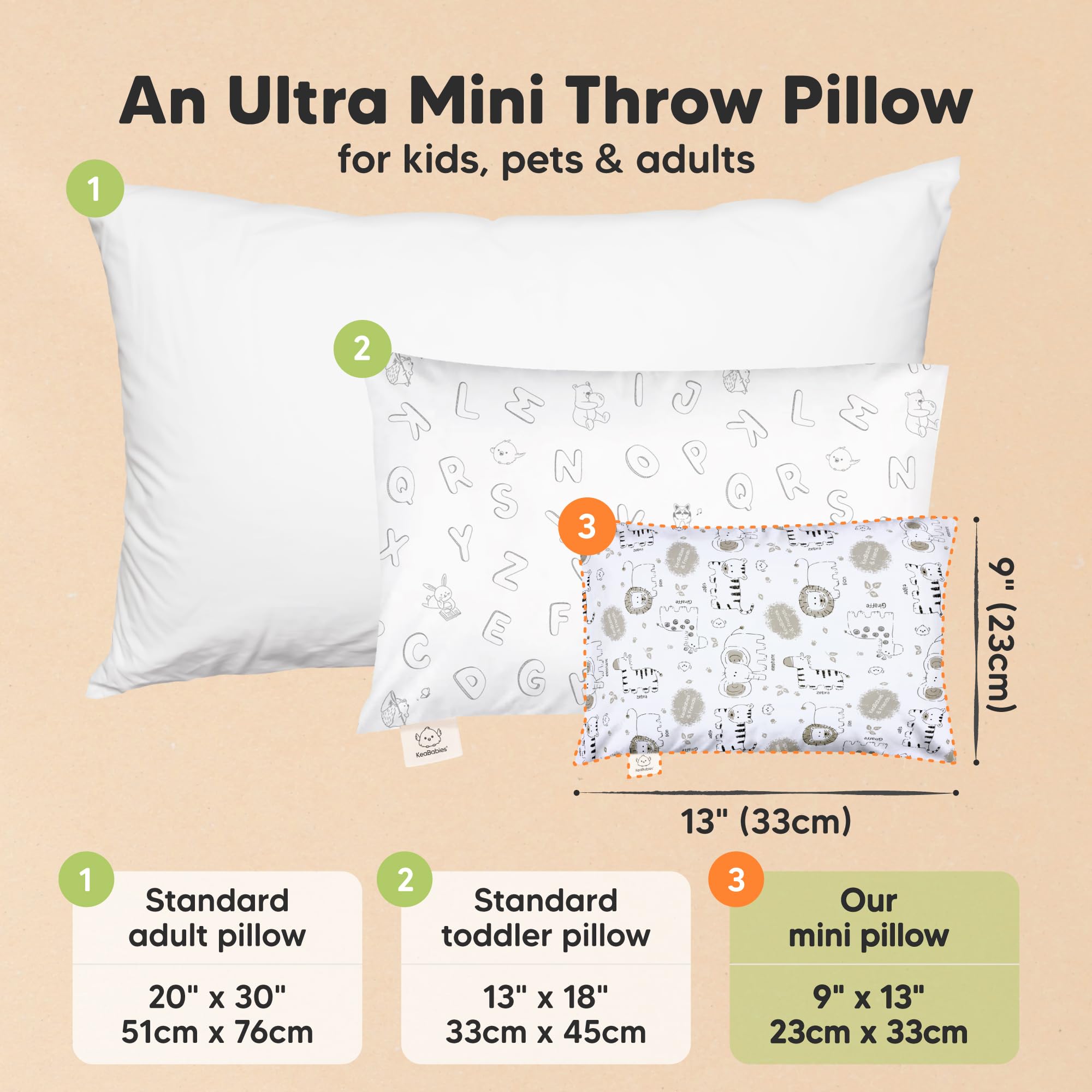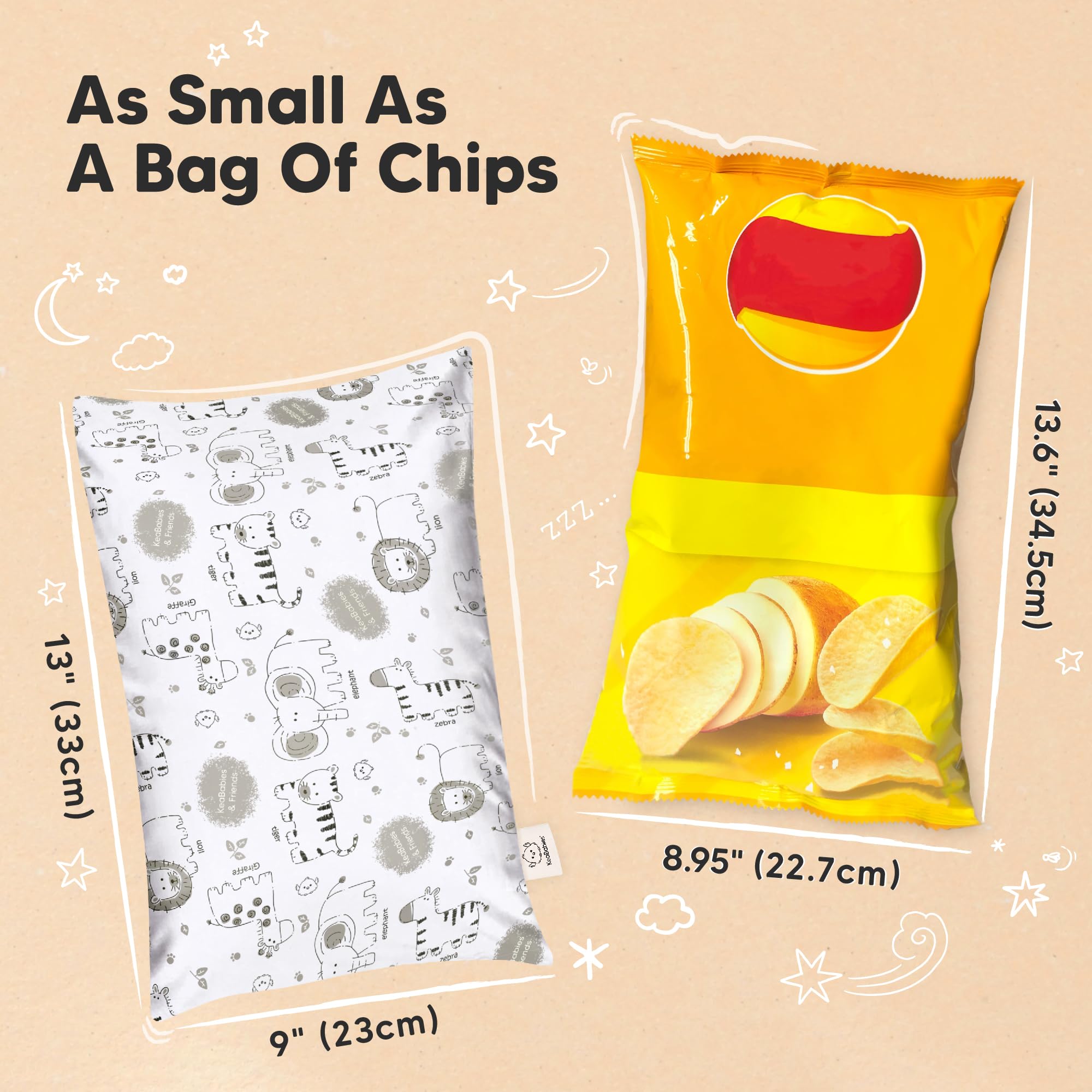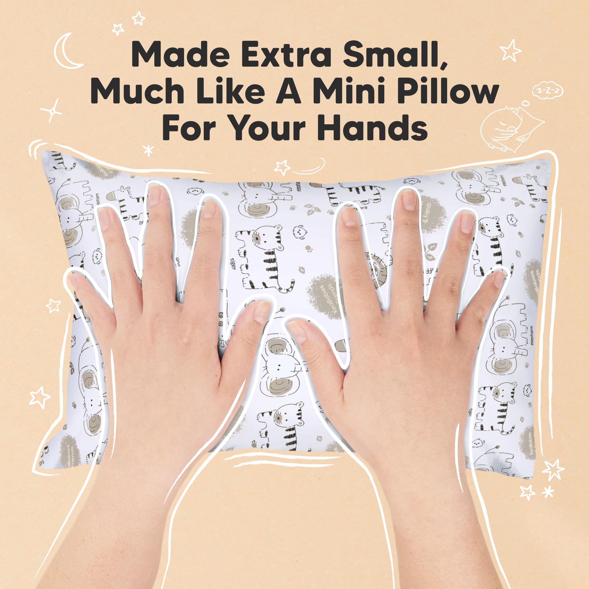 Introducing the 9"x13" Mini Toddler Pillow - A spin-off from the wildly popular KeaBabies My Little Dreamy Toddler Pillow. This small pillow is ergonomically crafted for sleep, play, and travel, and is sure to become your child's new favorite pillow.