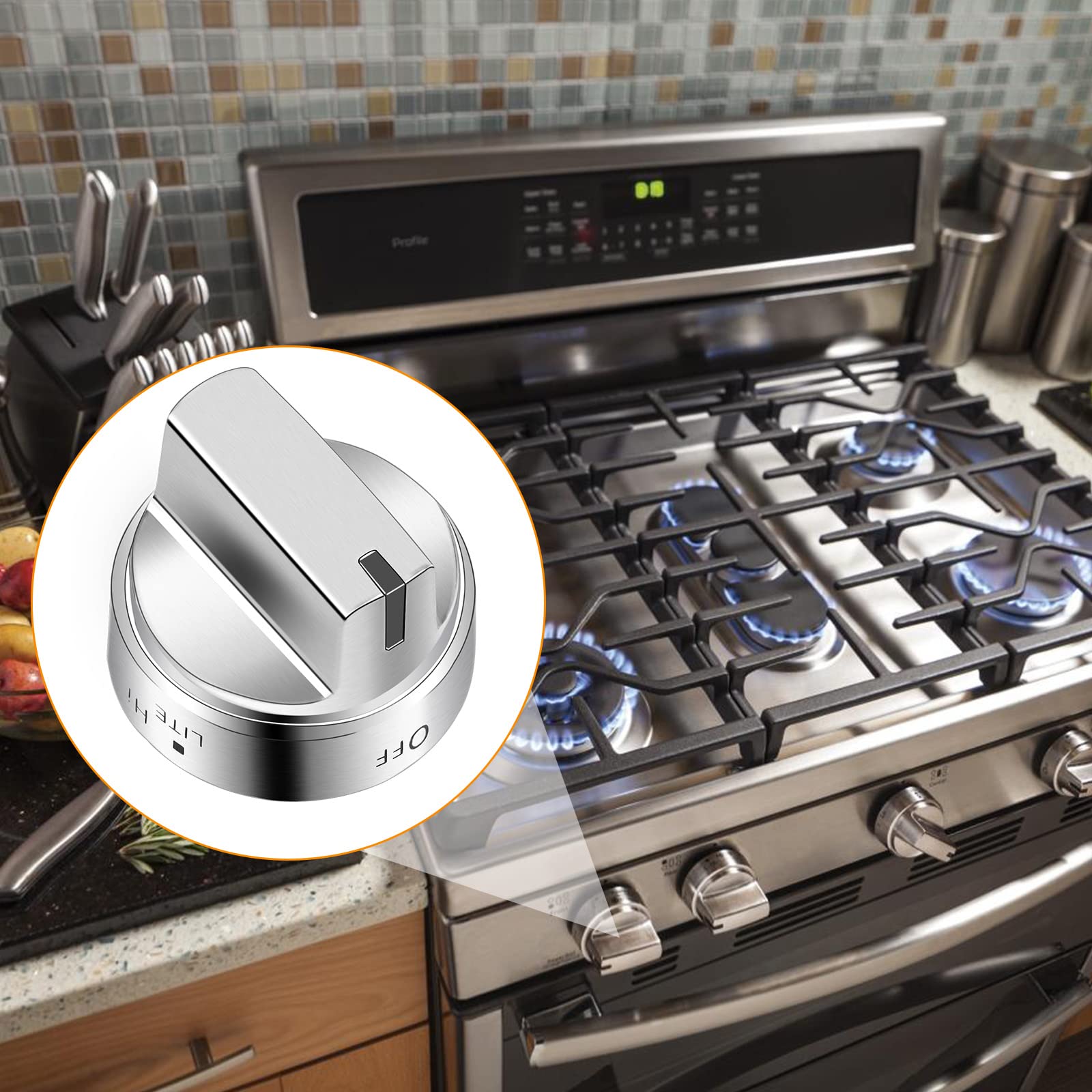【STAINLESS STEEL】: 1. not melt 2. Has no coating 3. not deformation. WB03X24818 stainless steel knobs After many high temperature tests, strict quality control.If your product will not start, will not select setting, will not turn. This surface burner knob WB03X24818 can help you solve