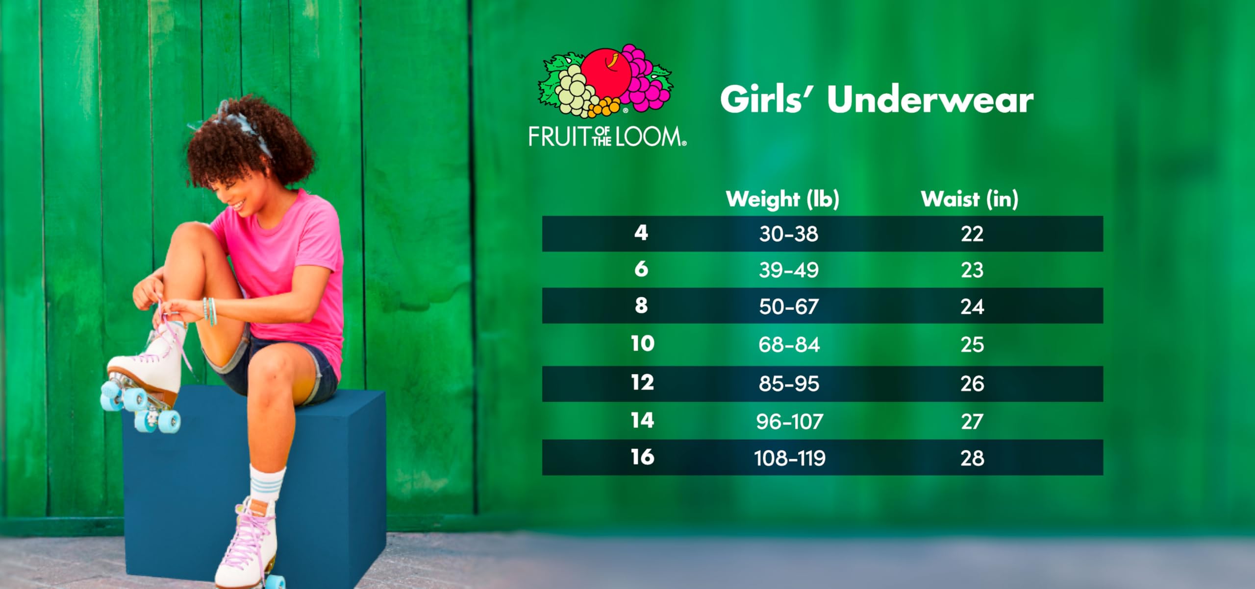 Description Our Fruit of the Loom girls' bikini is made with Eversoft fabric that provides premium softness wash after wash. They have a slightly higher leg and a lower rise that offers mom-approved coverage. As always, our panties are made tag free and with a 100% cotton liner for extra softness. Designed with a plush, ravel-free waistband which is sure to hold up wash after wash.