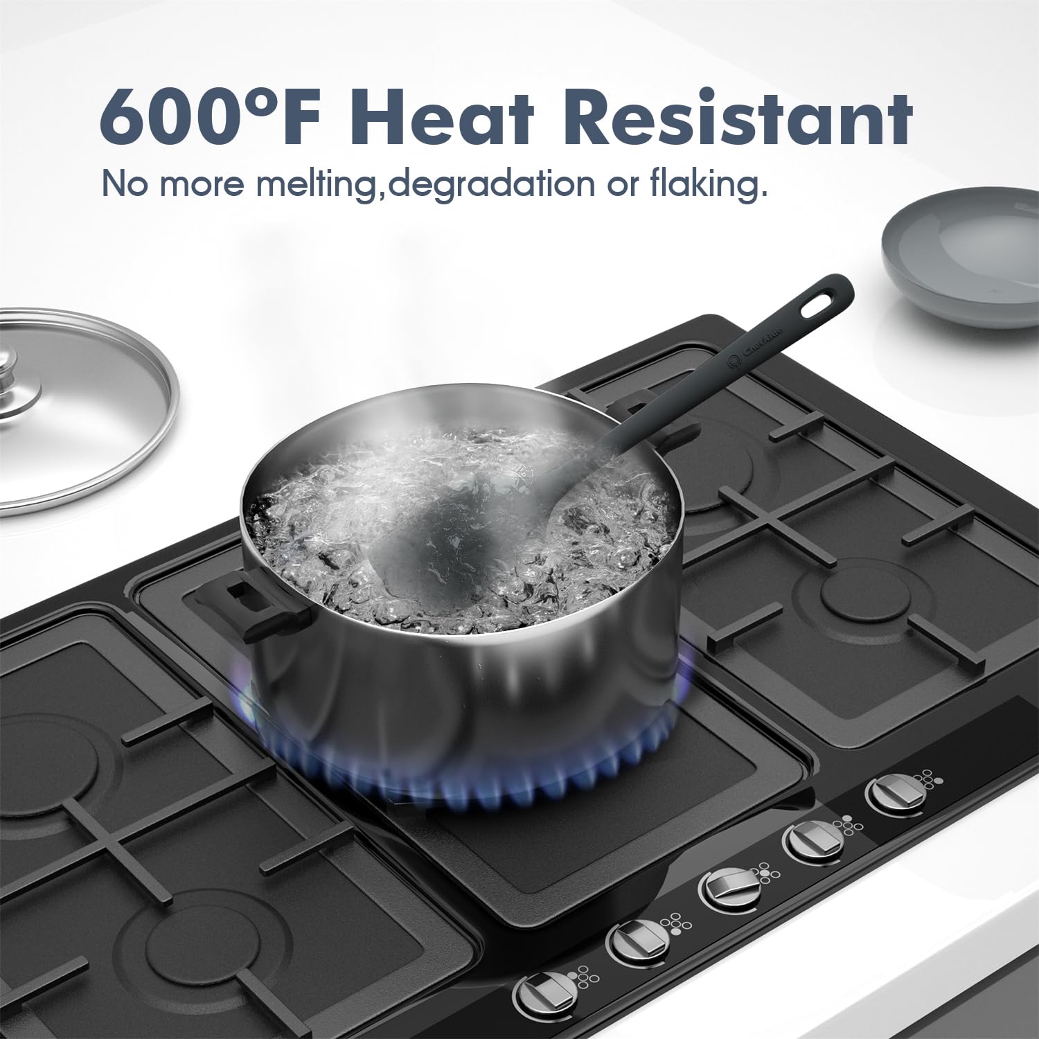 Premium 100% Food Grade Silicone: The silicone spatula set is made of healthy and friendly material, resistant to high temperatures up to 600 °F. No more melting, cracking and worrying