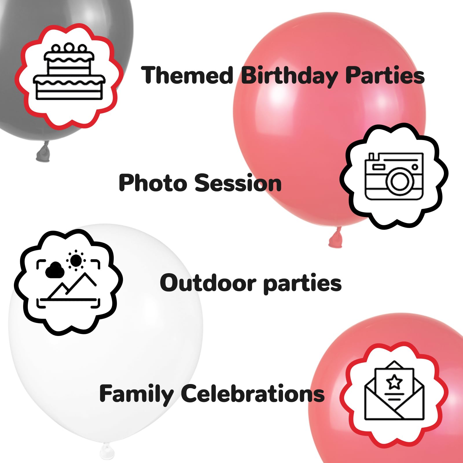 Safe Material Balloons :These black and red balloons are made of high standard quality latex material. it is non-toxic and no stange smell. supports helium or air, easy to inflate and won't break easily, They are safe to be used and played around children.