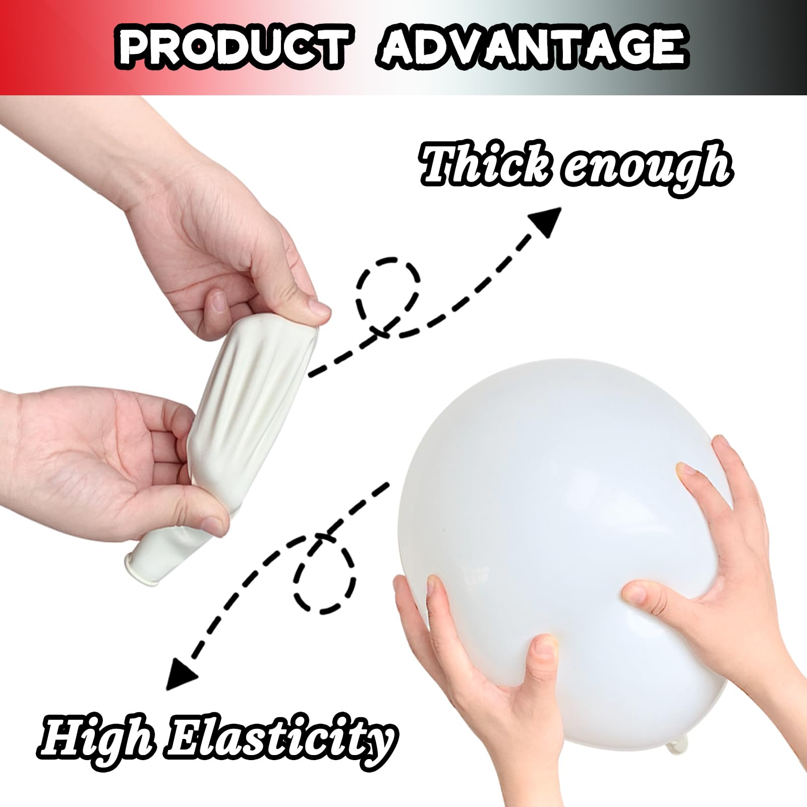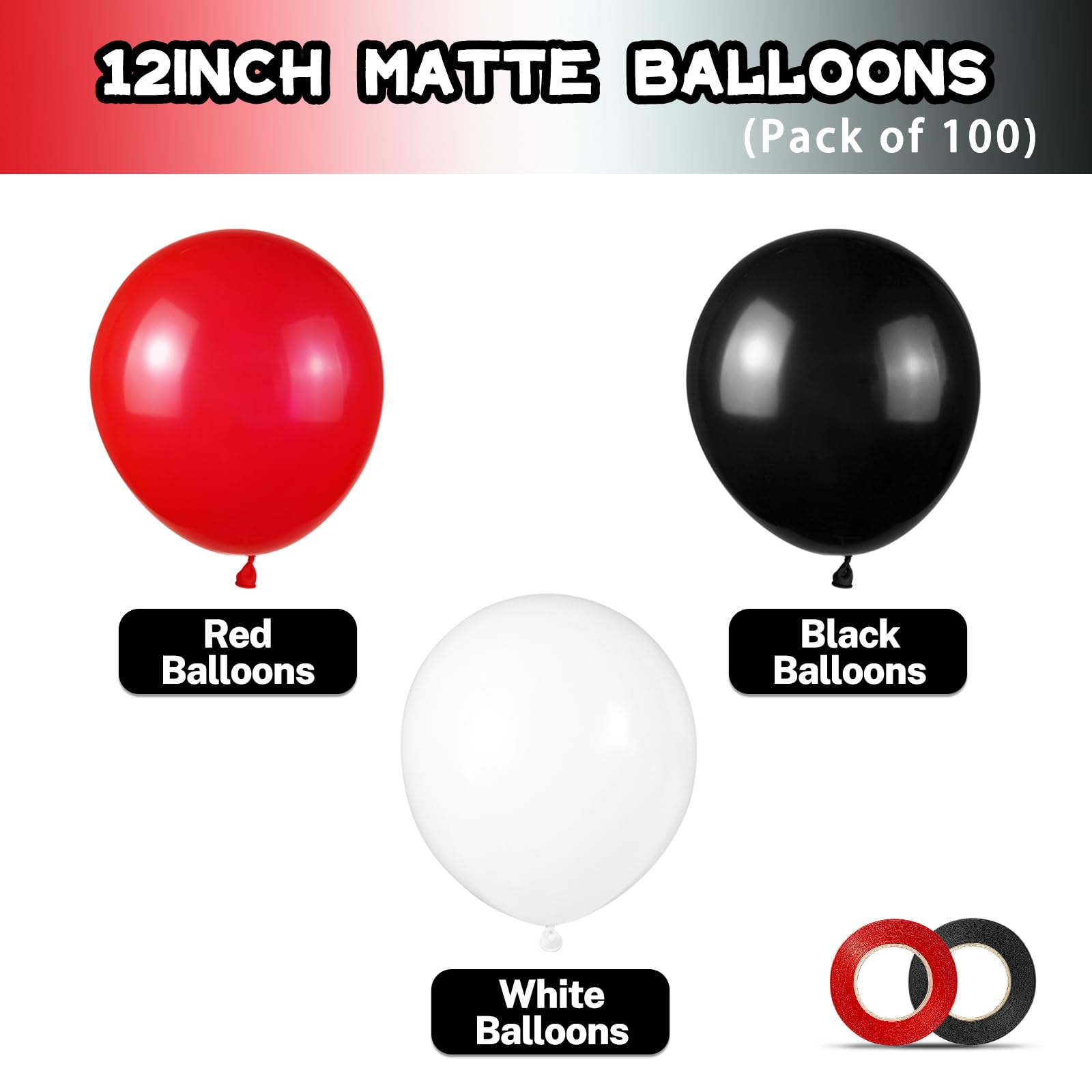 Value Pack:Includes 100 piece 12 inch red black and white balloons with 2 rolls of balloon ribbon, These Thickened Balloons weigh 2.8 grams each, Enough quantity can meet your festival or party decoration needs.