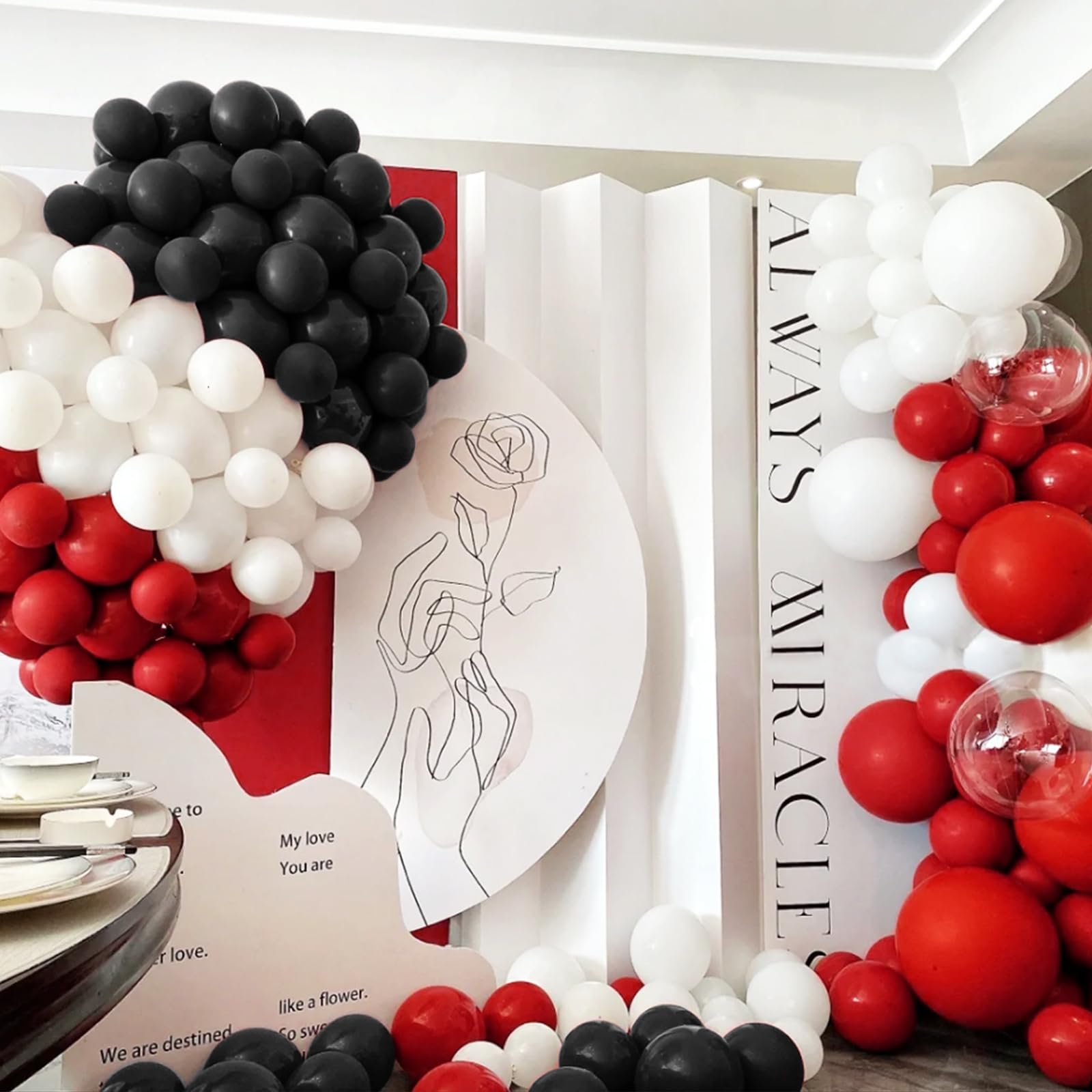 Classic color combinations - Our red white black balloons sets can add atmosphere to your party, Rich colour combinations are perfect for your creative decorating ideas, It will makes your party attractive and romantic.